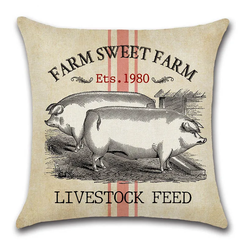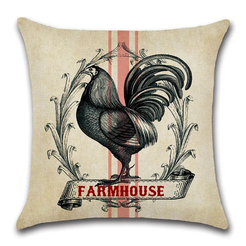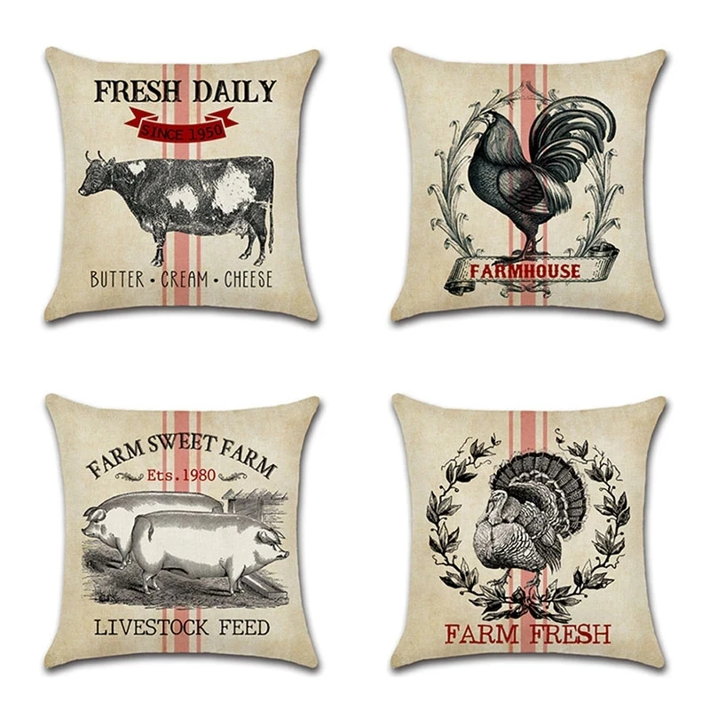 Винтажный декоративный чехол для подушки с рисунком животных фермы коровы, курицы, свиньи, петуха