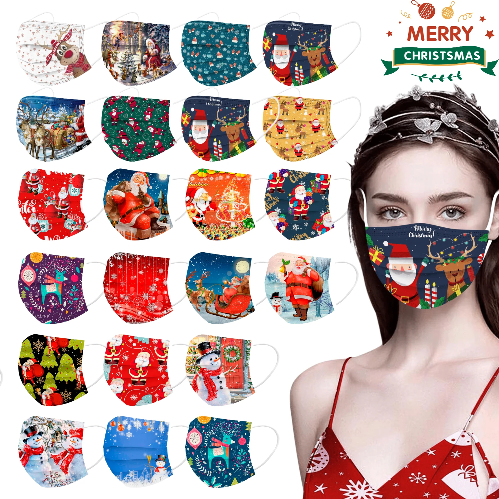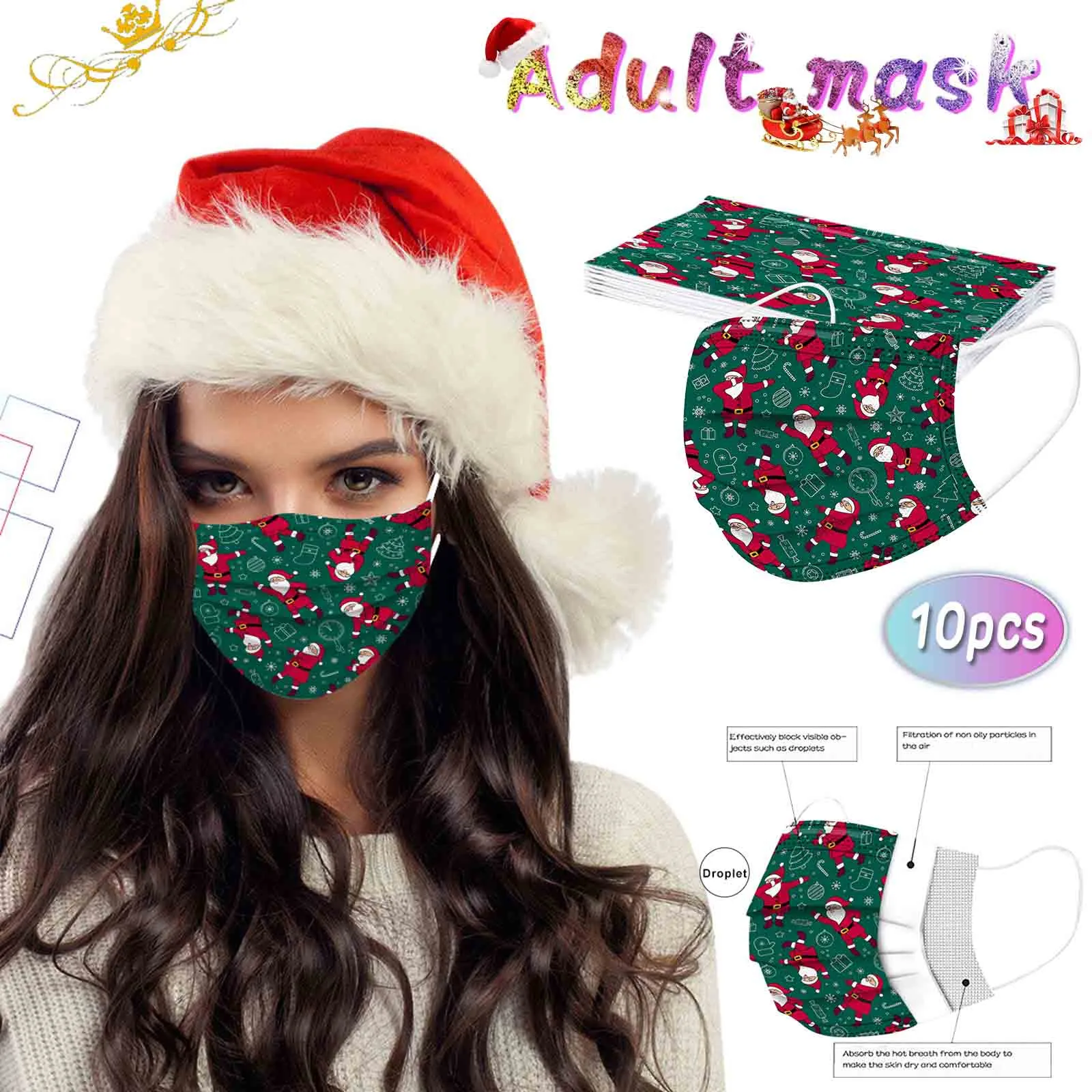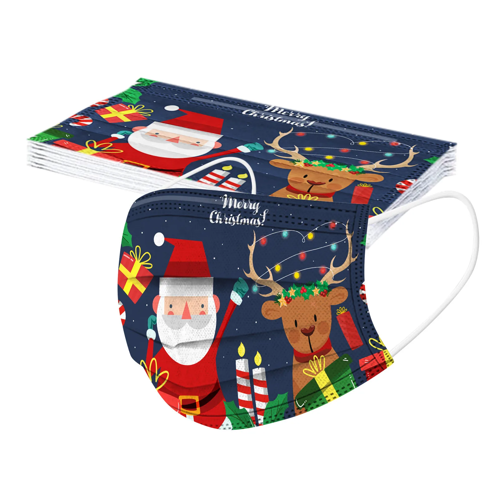 10 шт., одноразовые маски для взрослых с рождественским принтом