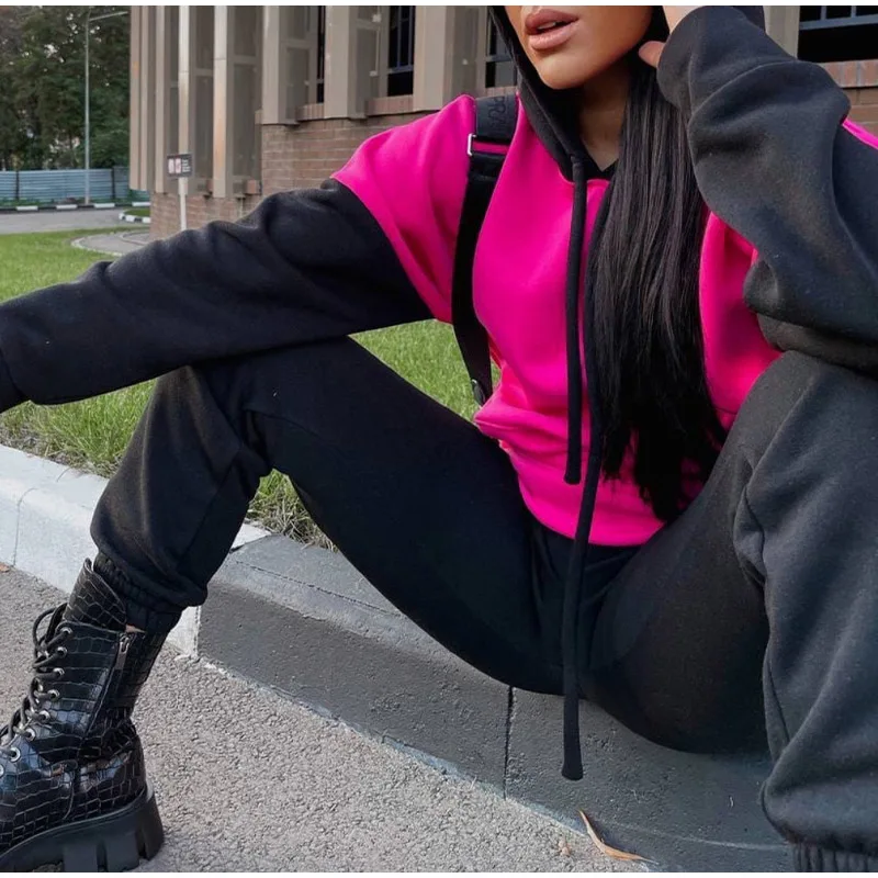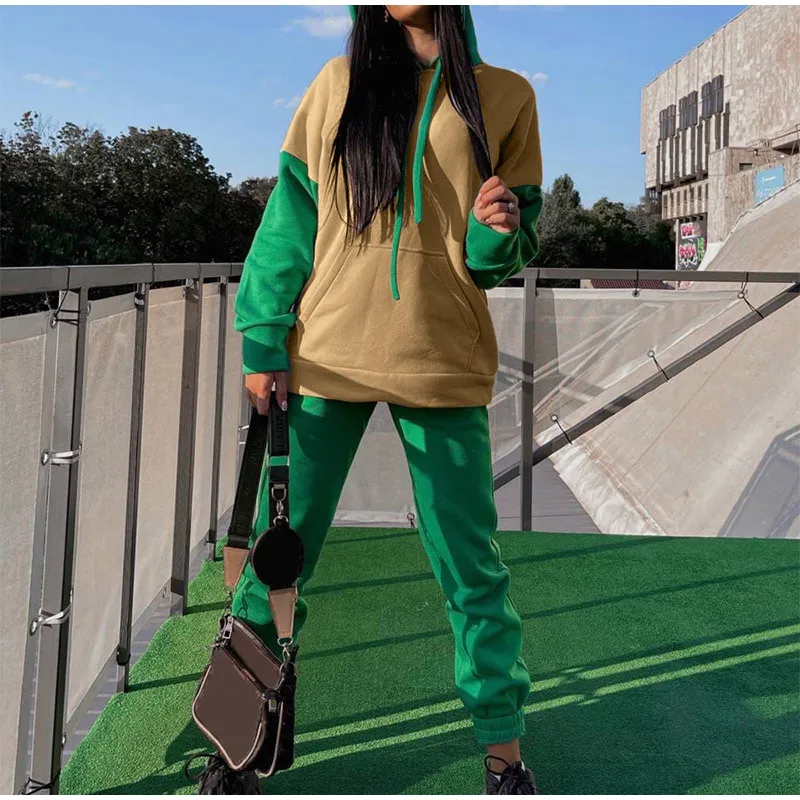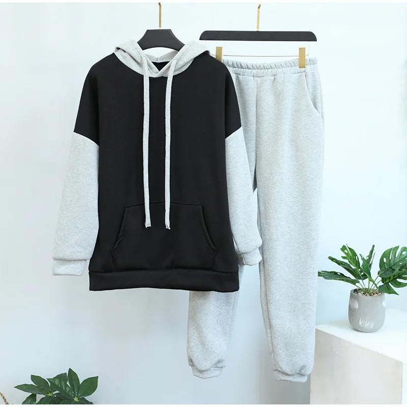 Style 22021 Winter New Warm Color Matching Loose Sweatshirt Sets