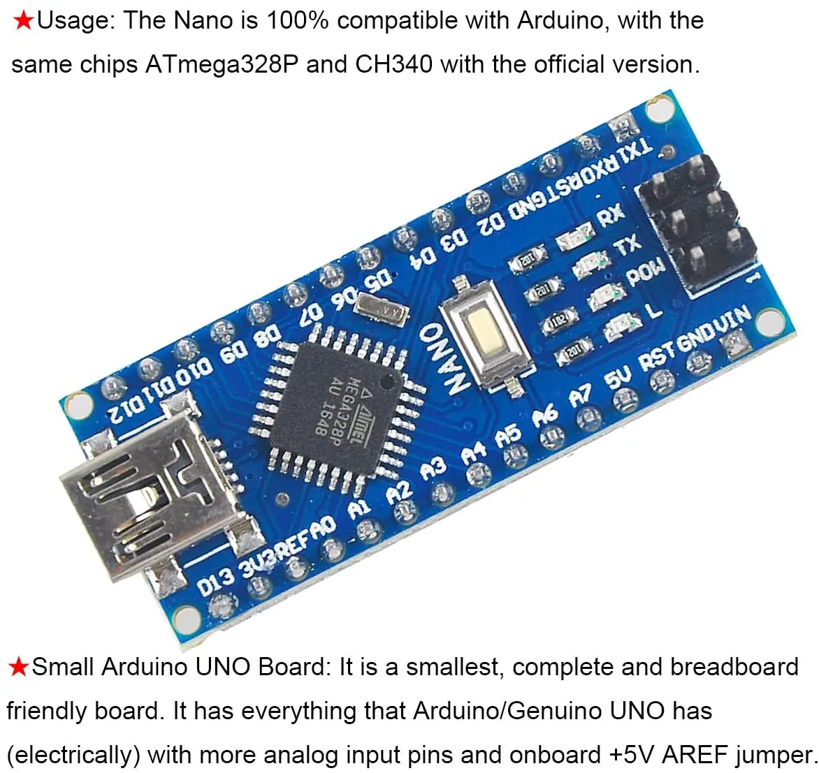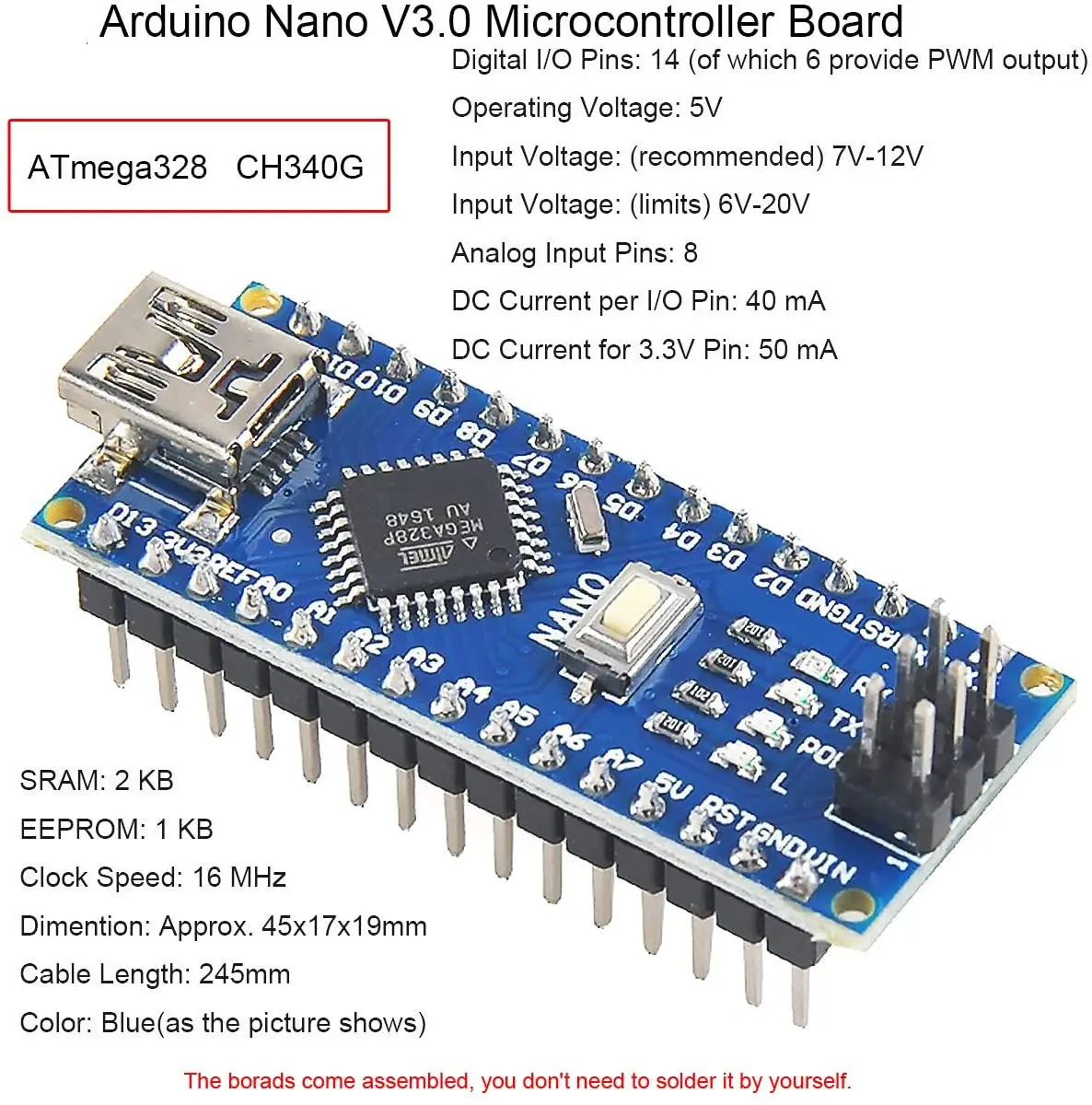 Совместимый контроллер Nano v3.0 для Arduino, с загрузчиком, USB-драйвером CH340, 16 МГц, ATMEGA328P168P