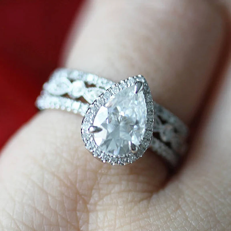 Уникальное обручальное кольцо Double Halo 5x8 мм Огранка груши брил...