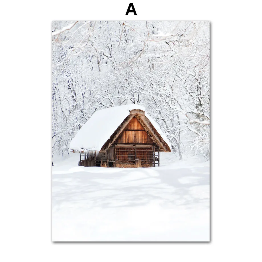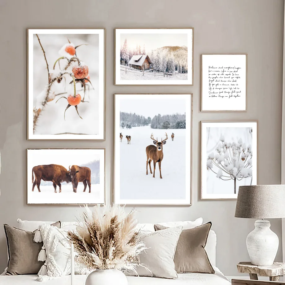 Трава тростник олень кедр стена искусство холст живопись деревня дорога зима фотография гостиной Рождество домашний декор