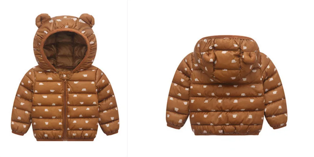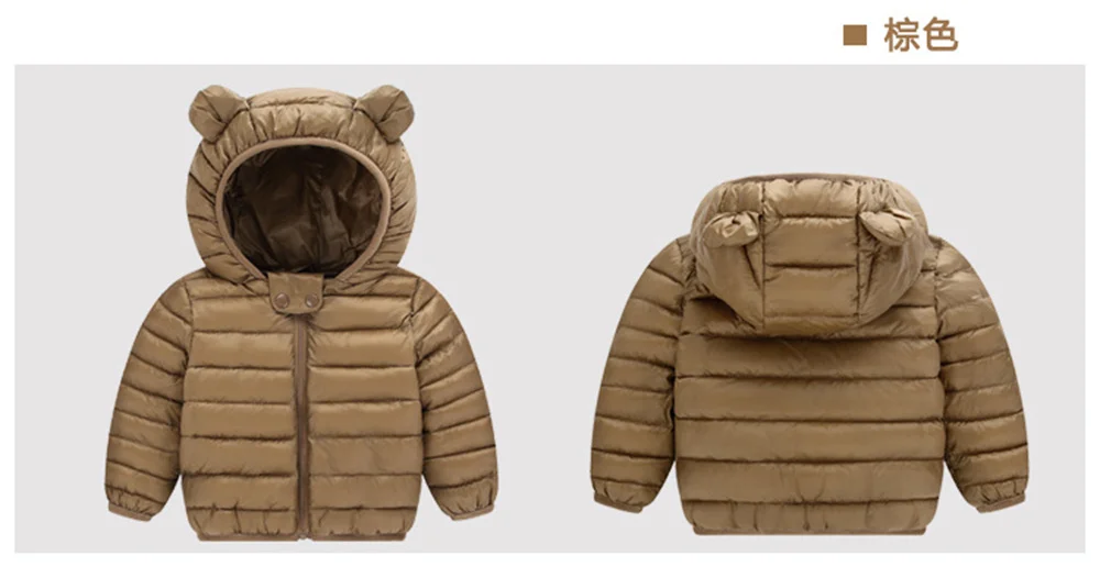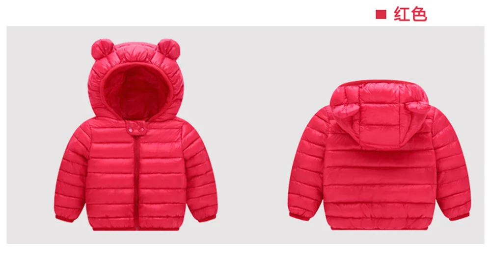 Красивые милые детские легкие пуховики с капюшоном с ушками, модная однотонная детская зимняя одежда с животными, высококачественные пальто для девочек и мальчиков
