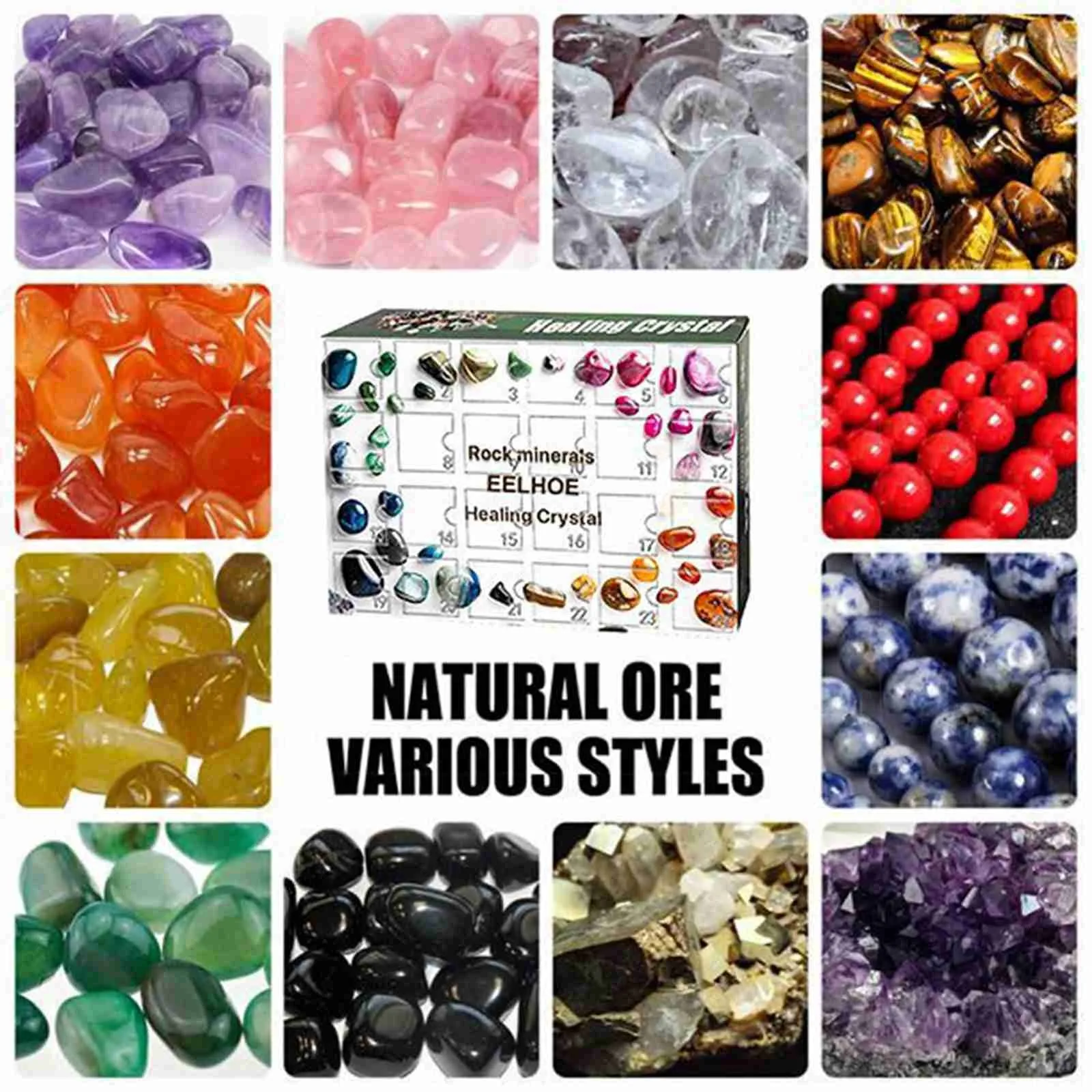 Детский календарь для нового года, календарь с обратным отсчетом, лечебные кристаллы, геологические минеральные драгоценные камни, Женская смешная образовательная игрушка, подарок 24 дня