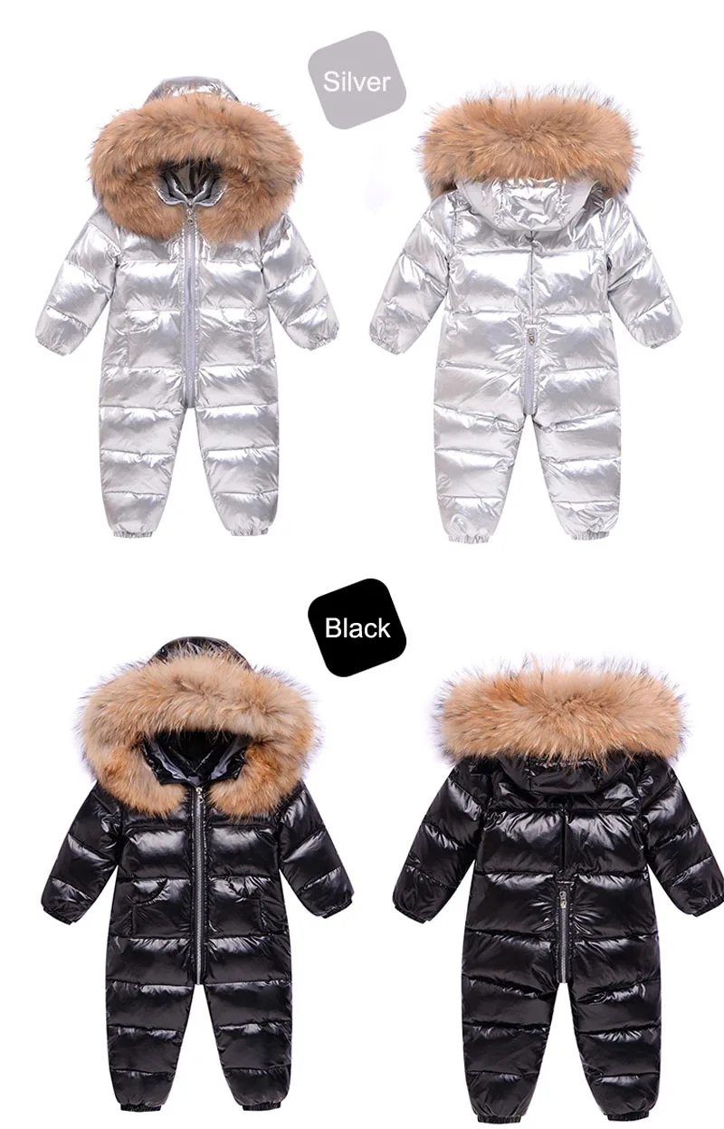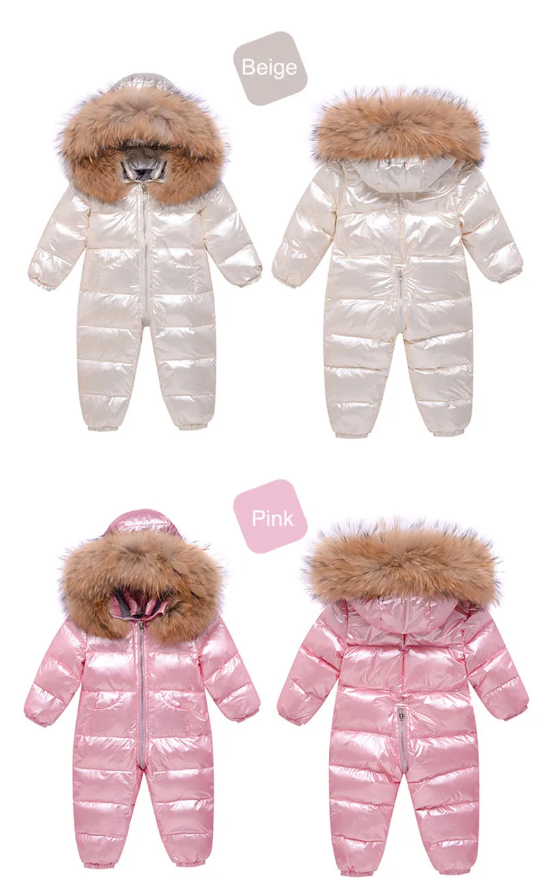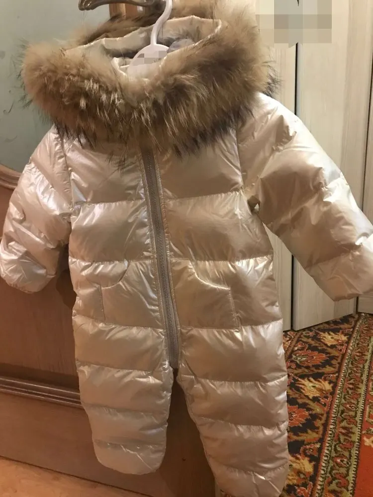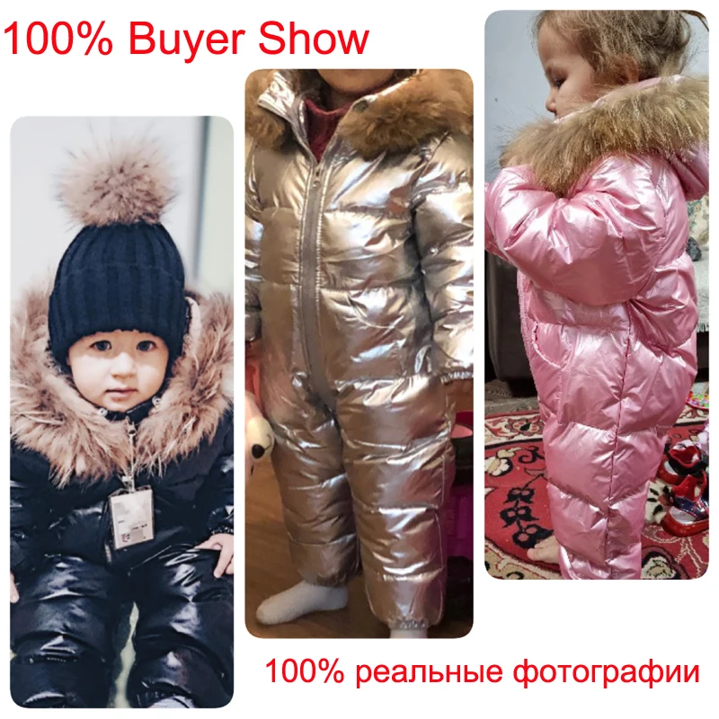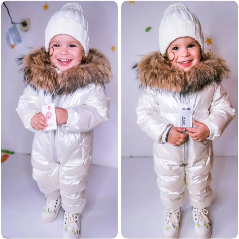 Детский пуховик для русской зимы Толстый Лыжный костюм для мальчиков комбинезон на белом утином пуху для девочек, зимний комбинезон, детские комбинезоны Новогоднее пальто, одежда