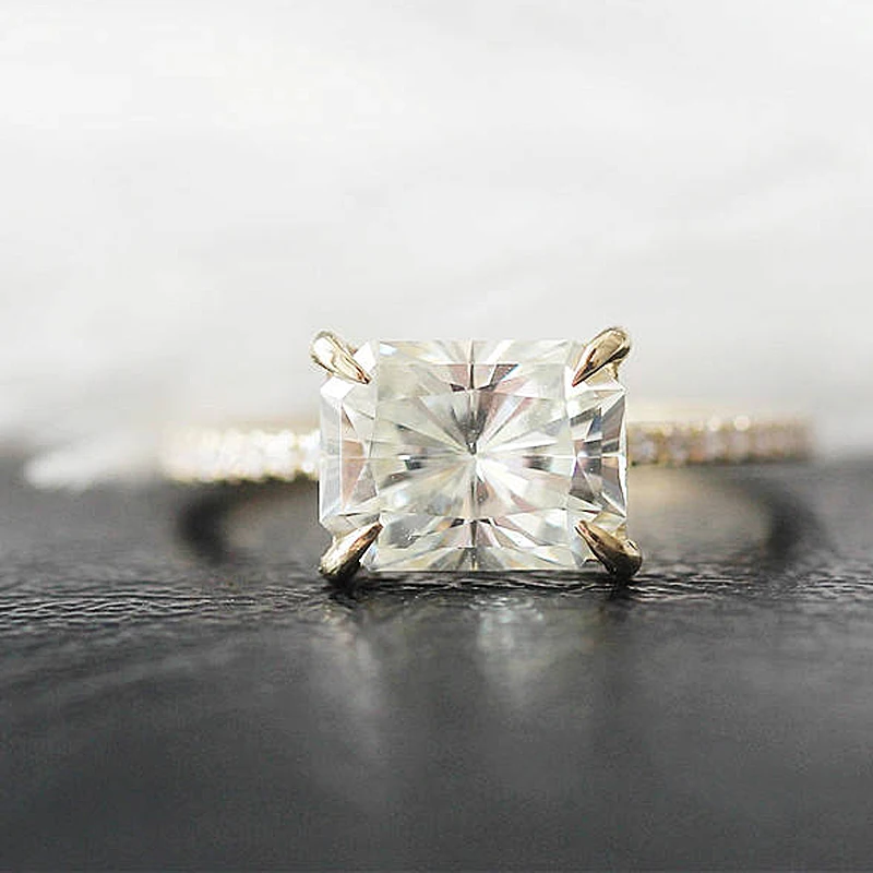 14K желтое золото 1.8ct карат 8*6 мм сияющее огранка Moissanite обручальное кольцо для невесты изящное кольцо ювелирные изделия