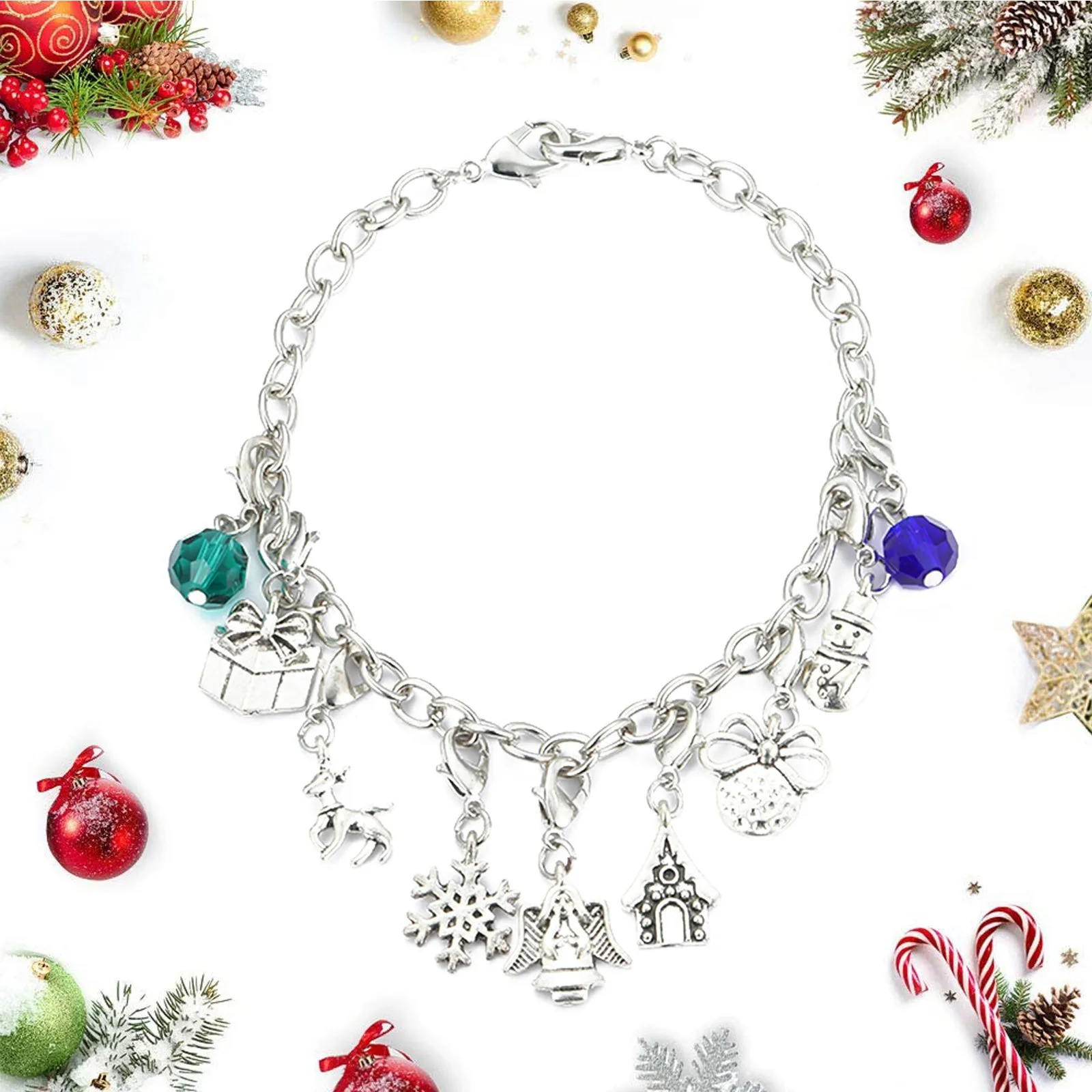 2: женский браслет-шарма для девочек 24 шт.-этот браслет-Шарм появляется в календаре, который очень утончен с рождественской темой стильного шарма, который идеально подходит для девушек и женщин, чтобы насладиться временем изготовления браслета. 24 шт. Рождественский комплект ювелирных изделий-1 браслет, 1 ожерелье и 22 Милых Мини-бисера, включая Рождественские елки, колокольчики, Снежинки и т. д. Сделай Сам ваши браслеты каждый день с 1 декабря по Рождество.