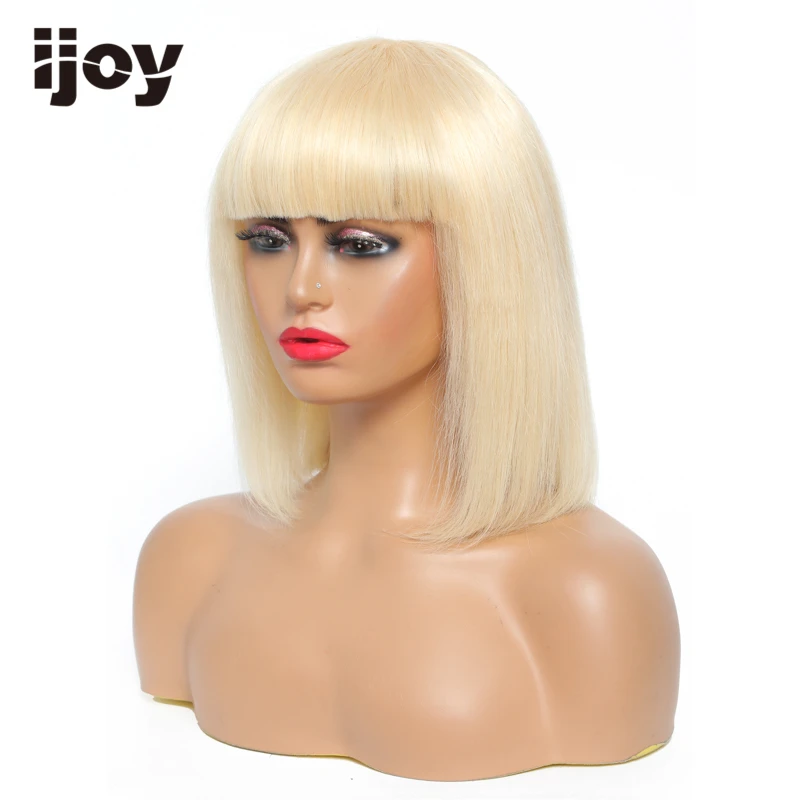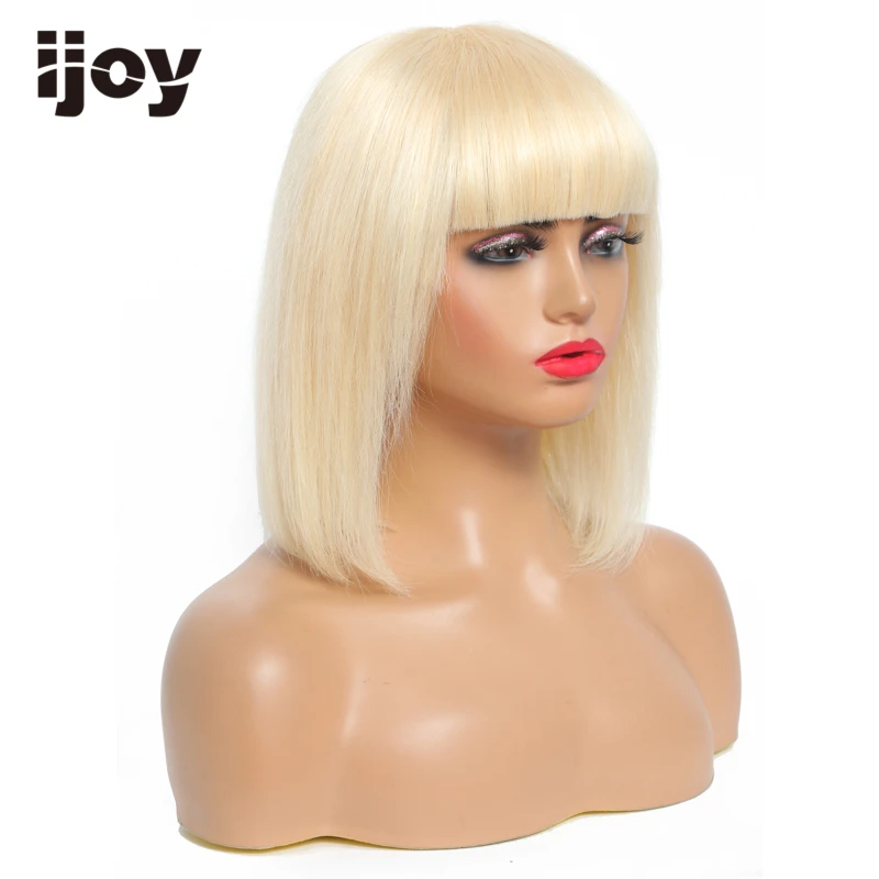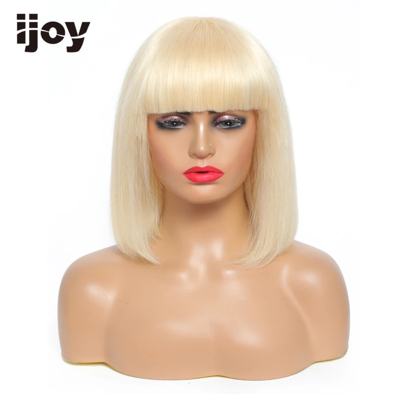 Парик из человеческих волос с челкой, прямой парик Боб, цветные 613 блонд, бразильские волосы, парики для чернокожих женщин, не Реми, IJOY