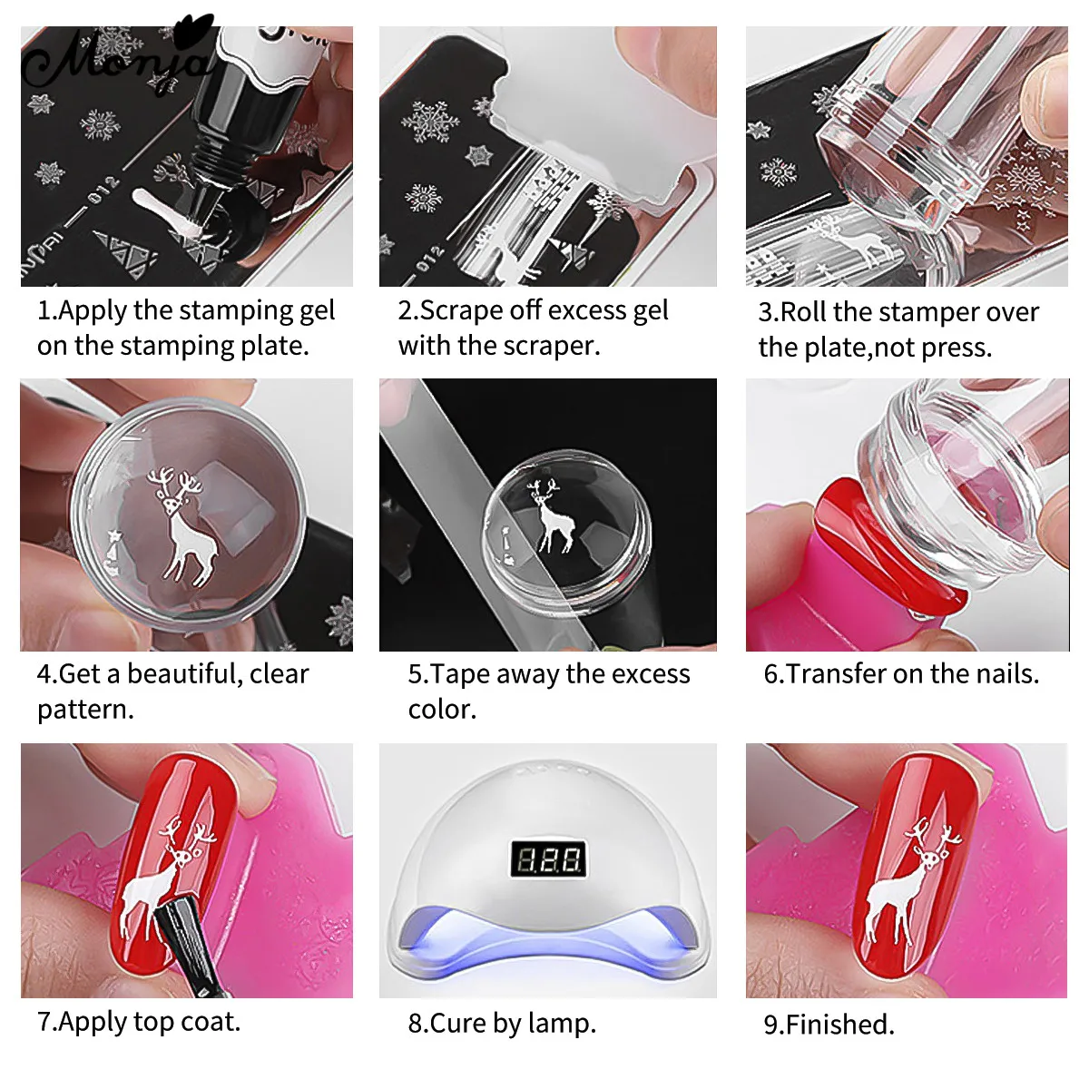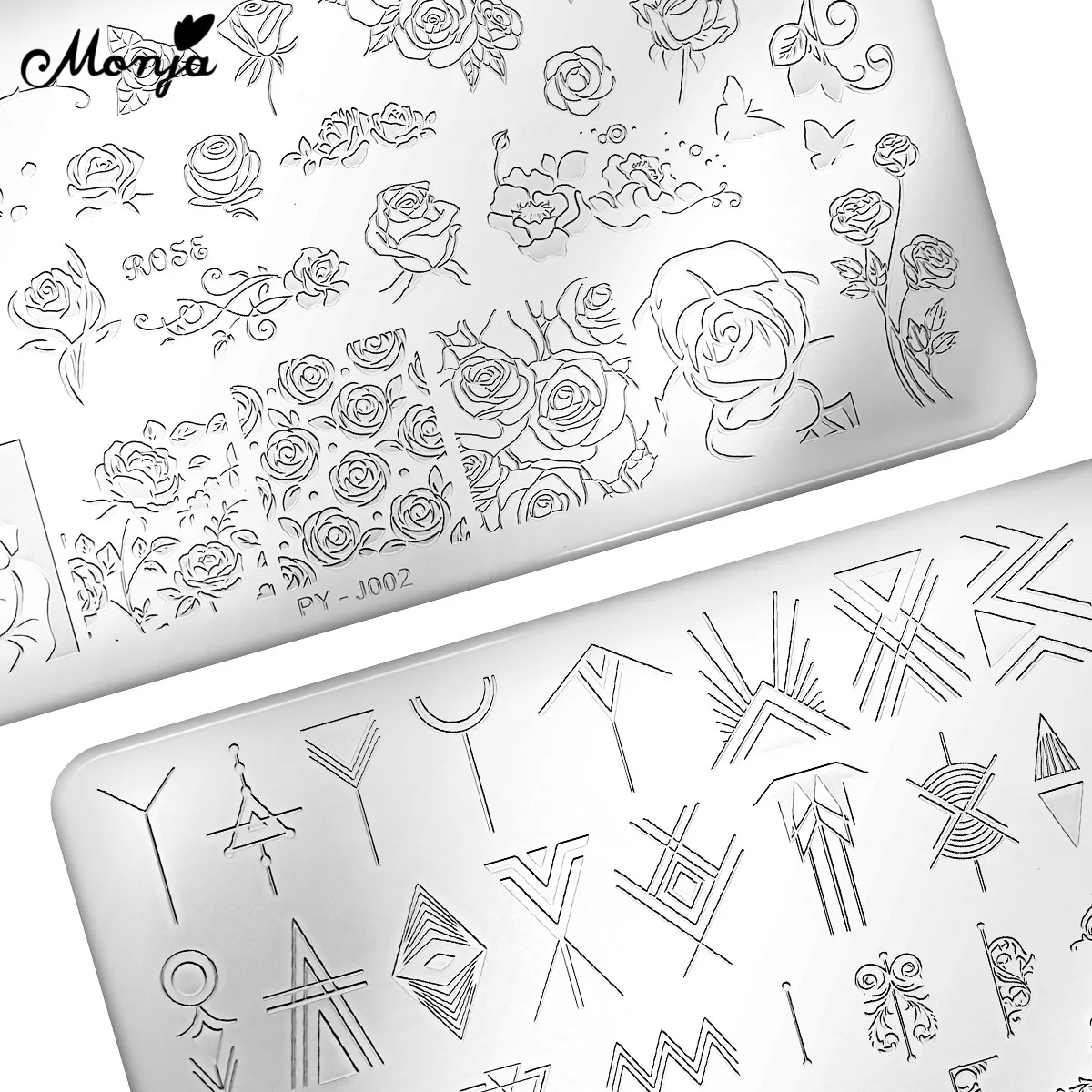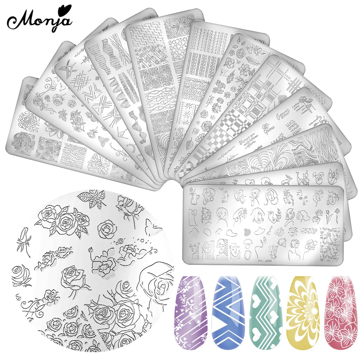 Monja 12 видов стилей шаблоны для дизайна ногтей в цветочную полоску с буквами и геометрическими узорами для женщин трафаретная печать для маникюра