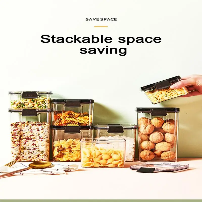 Высококачественная Штабелируемая кухонная герметичная банка, пластиковая коробка для хранения пищевых продуктов, многозерновая емкость для хранения, банка для сухофруктов и чая, контейнер для хранения