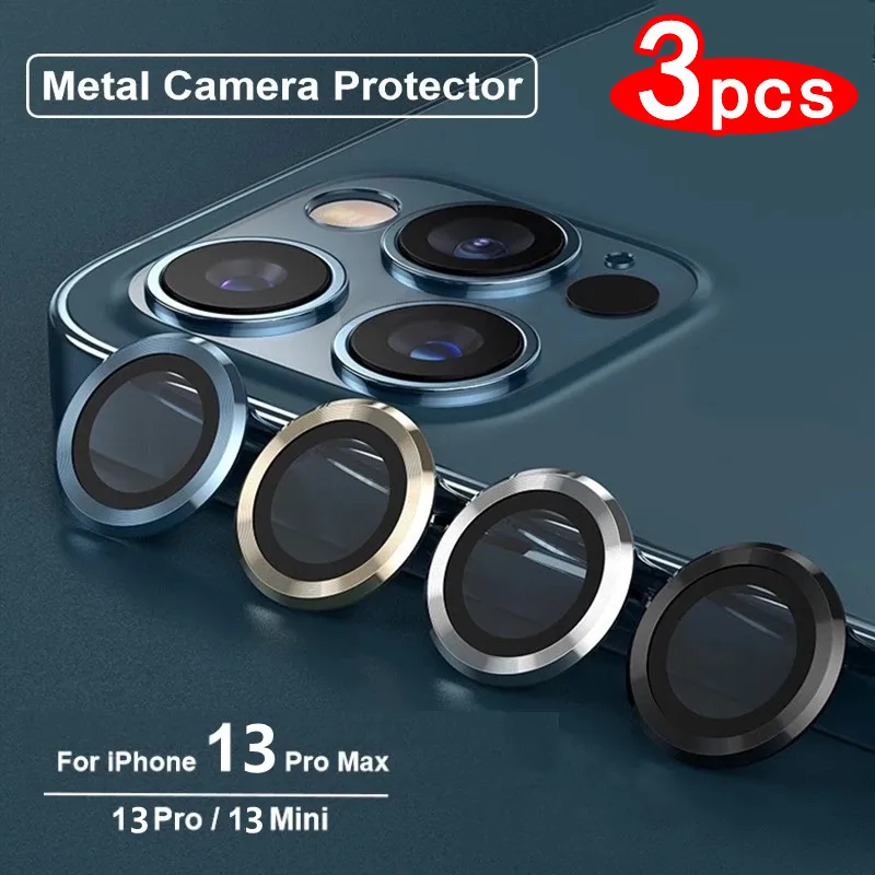 Закаленное стекло с металлическим кольцом для iPhone 12 11 Pro Max, защита для объектива камеры с полным покрытием для iPhone 13 Pro Max Mini, защитная крышка
