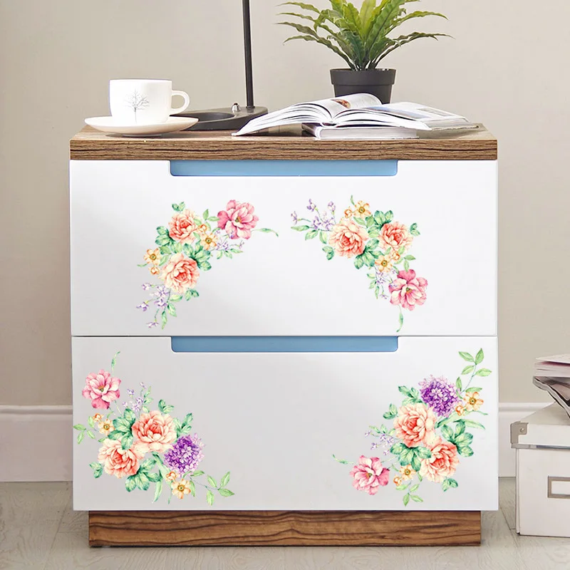3D Красочные цветы, наклейки на стену, красивые пионы, наклейки на холодильник, шкаф, туалет, ванная комната, украшения, ПВХ наклейки на стенуклей