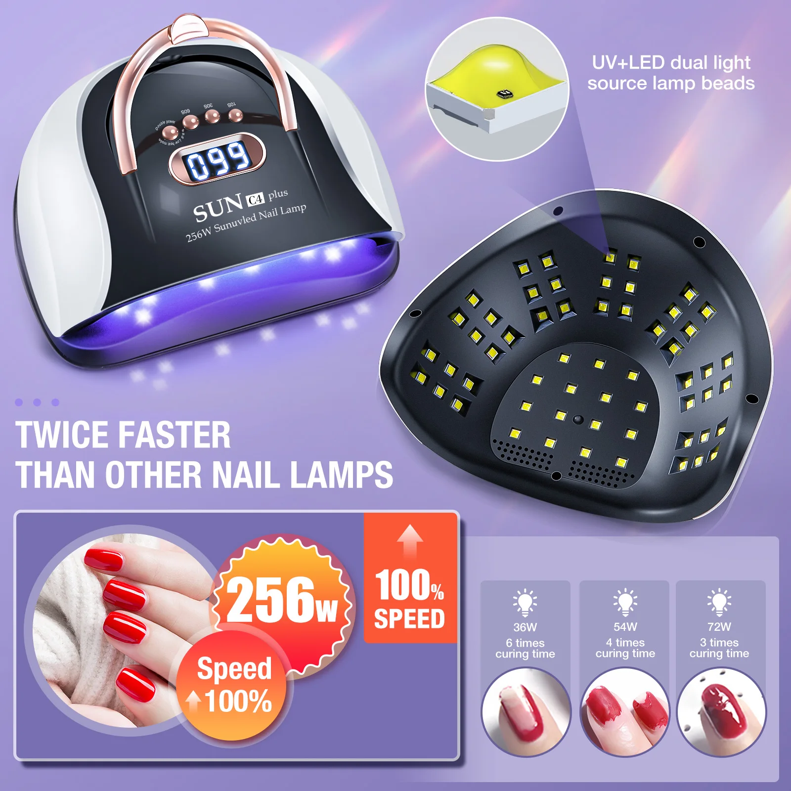 256 Вт Светодиодная УФ-лампа для ногтей УФ-светильник Сушилка для ногтей Маникюр для двух рук лампа для отверждения гель-лака с 57 светодиодами автоматический датчик ЖК-дисплей