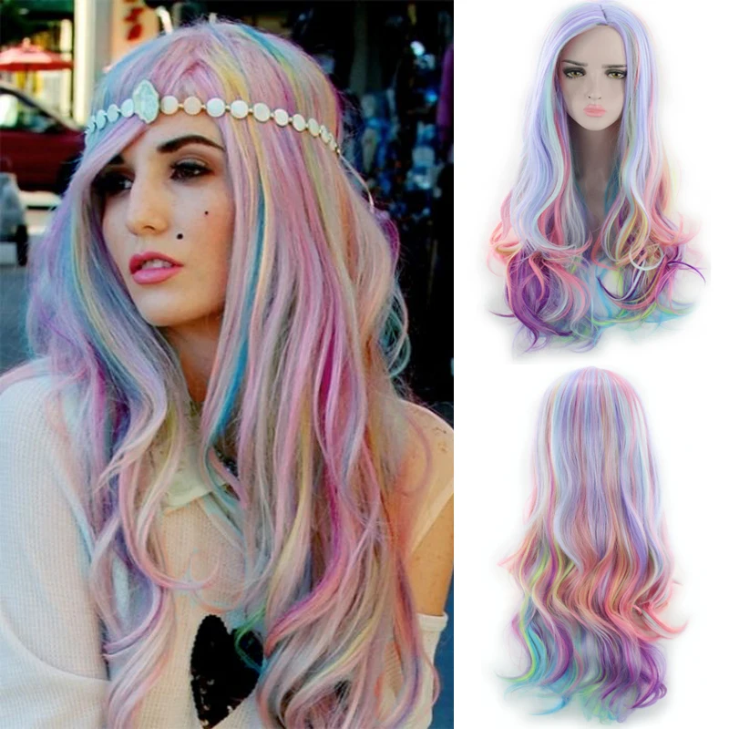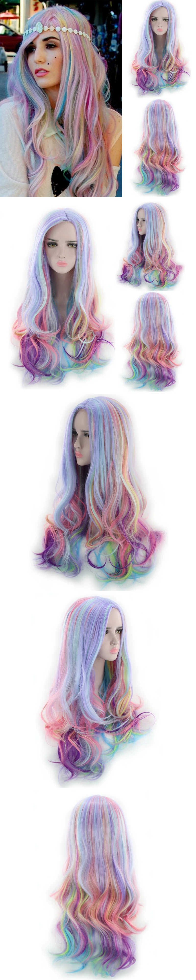 LANLAN Cos парик с градиентом радужного цвета длинные волнистые волосы синтетический термостойкий Аниме парик для женщин