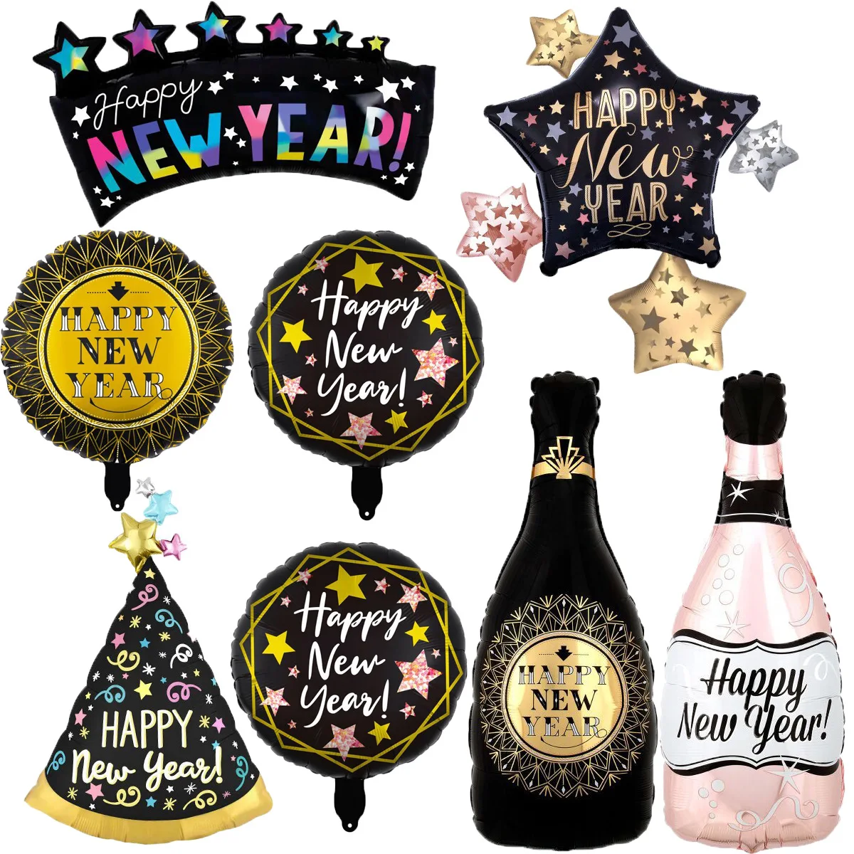 2022 новогодний воздушный шар, украшение, набор воздушных шаров из алюминиевой пленки, винная бутылка, шарик 4D с пятиконечной звездой, воздушный шар для ежегодвечерние
