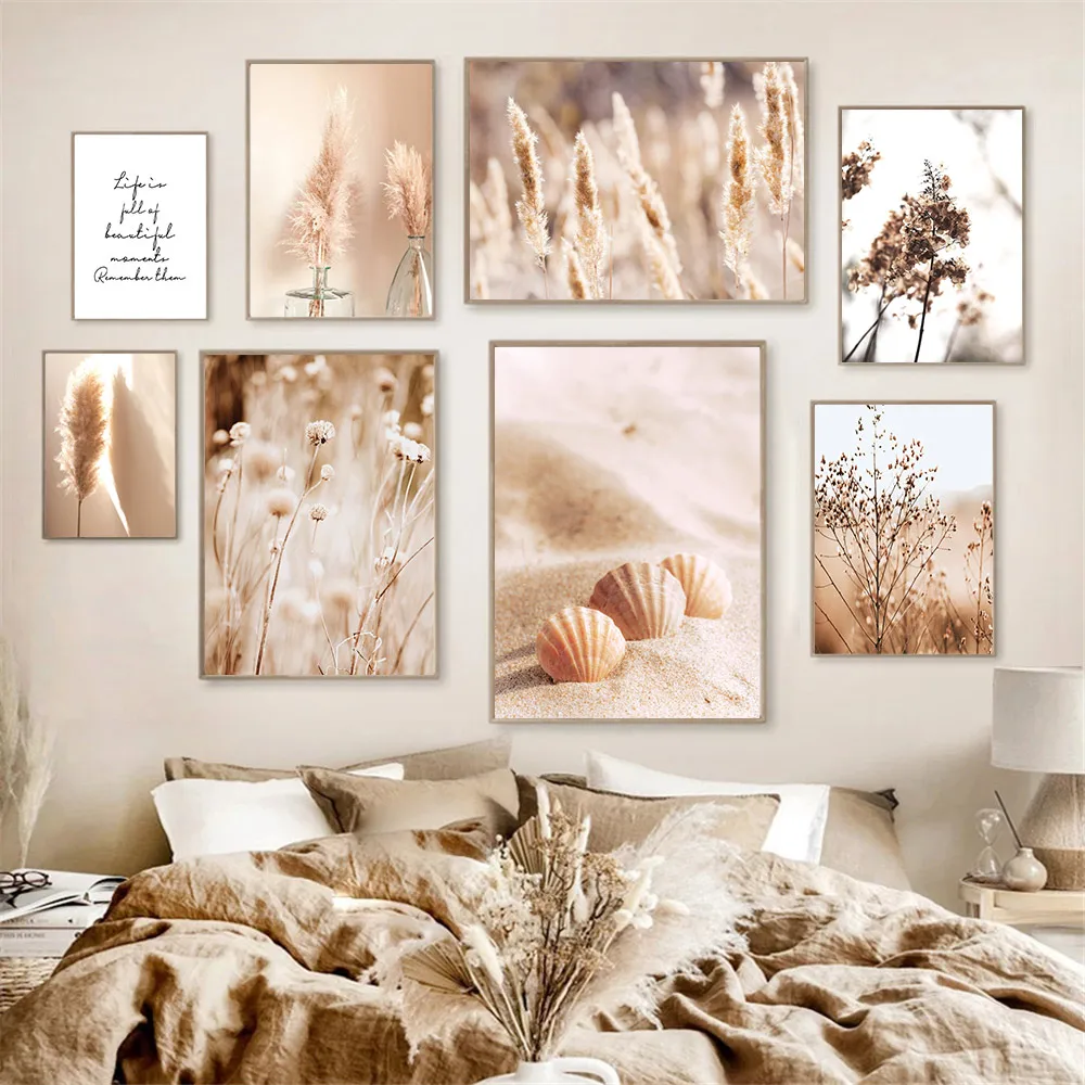 Засушенные растения, цветы, холст, живопись, трава, тростник, постеры и принты, природный пейзаж, настенные картины, гостиная, украшение для дома
