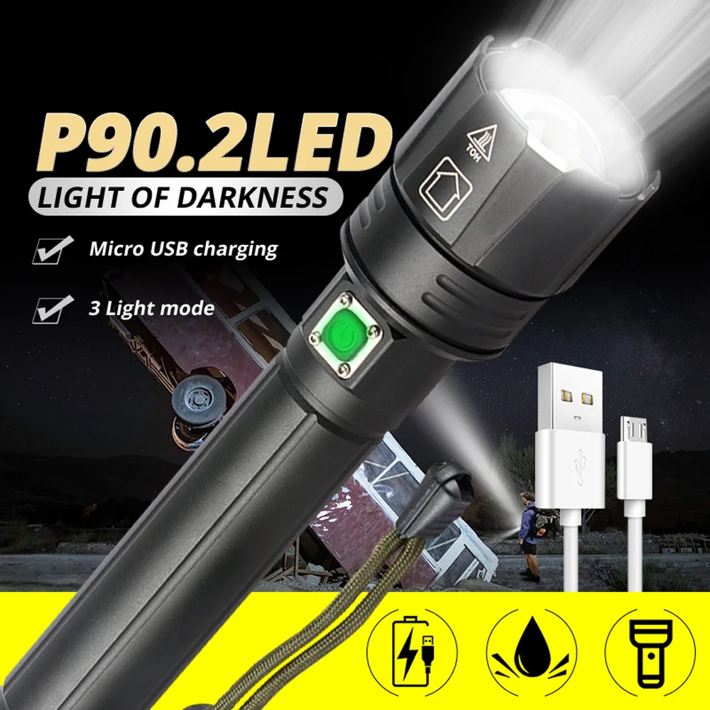 Мощный светодиодный фонарик xhp90, xhp90.2, xhp70.2, USB Фонарь руч...