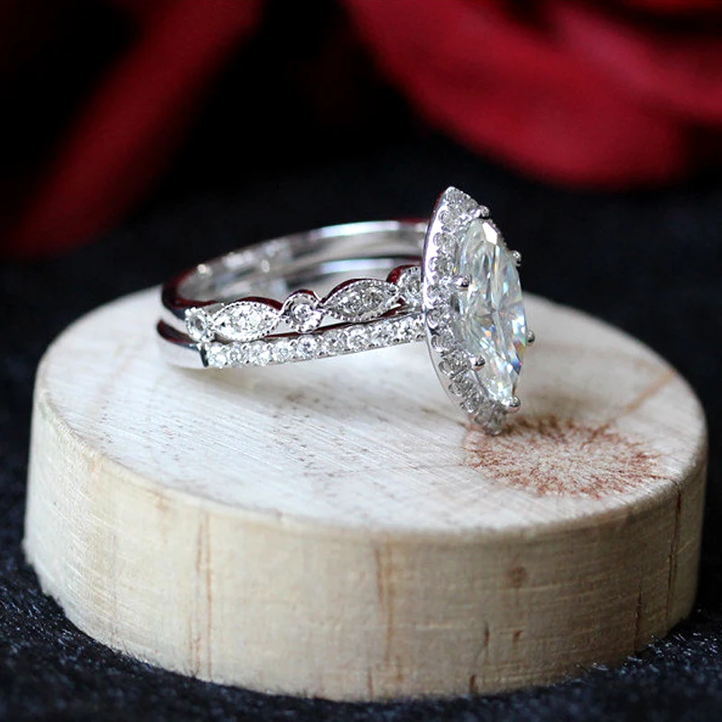 Marquise and Round Moissanite 1ctw lab Diamond Solitaire Обручально...