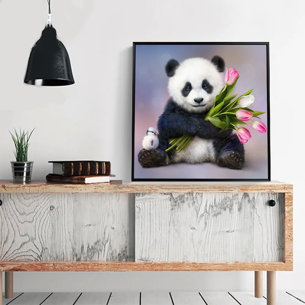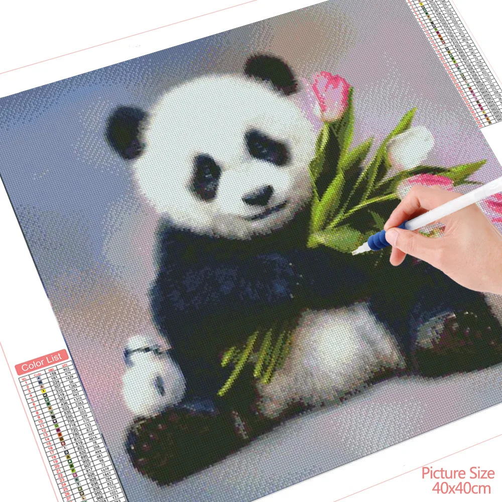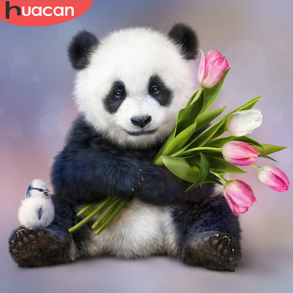 Набор для алмазной живописи HUACAN, панда, тюльпан, квадратнаяКруглая Мозаика, вышивка с животными, Цветочный Декор для дома
