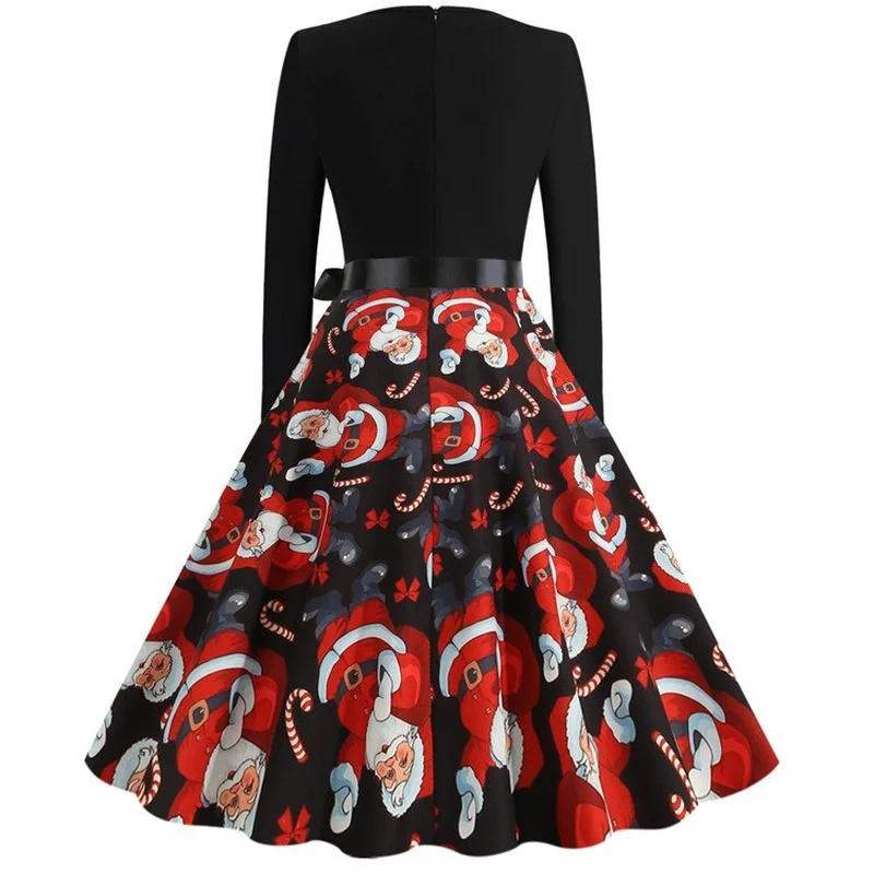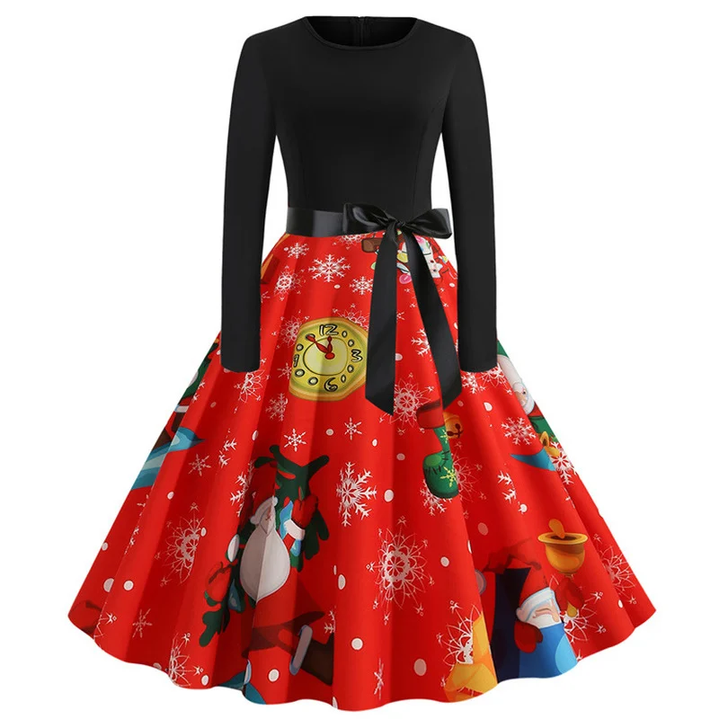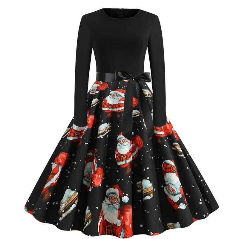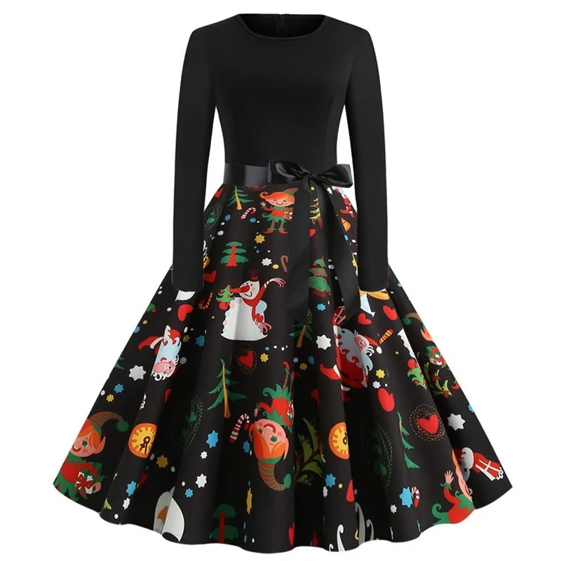 Новинка 2021, рождественское модное вечернее платье с длинным рукавом и круглым вырезом, вечерние с широкой юбкой и принтом