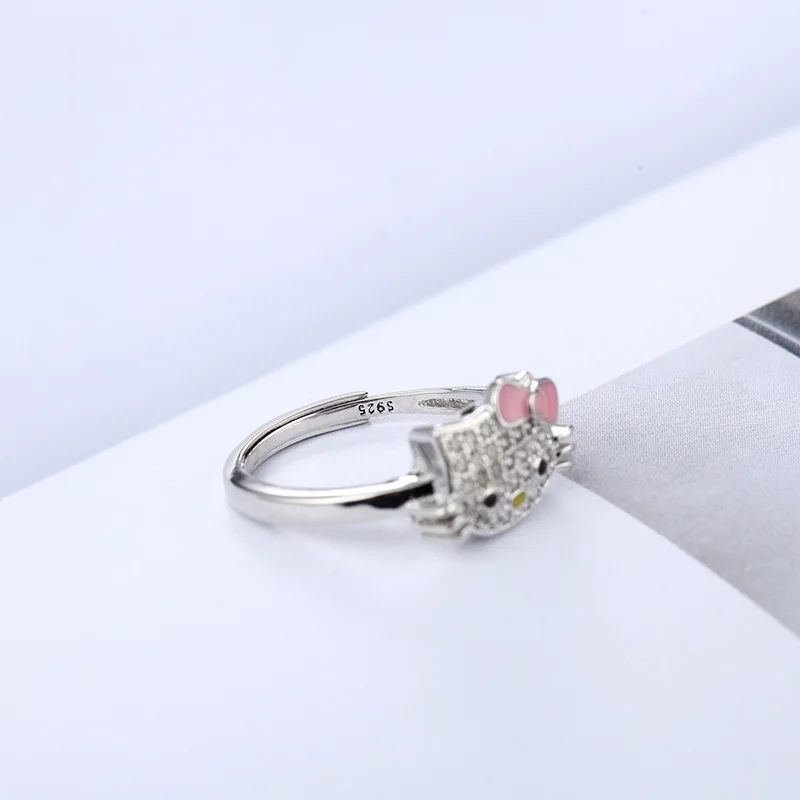 Новинка, кольцо Kawaii Sanriod из мультфильма Kitty с кристаллами, милое модное кольцо с бриллиантами, аксессуары, подарок для маленькой девочки
