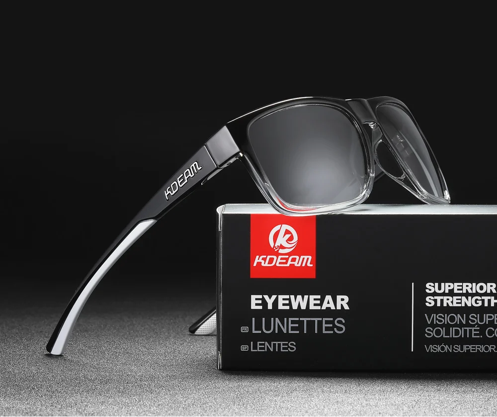Мужские и женские квадратные солнечные очки KDEAM, поляризационные фотохромные солнцезащитные очки с нескользящей подкладкой для носа, Аксессуары в комплекте