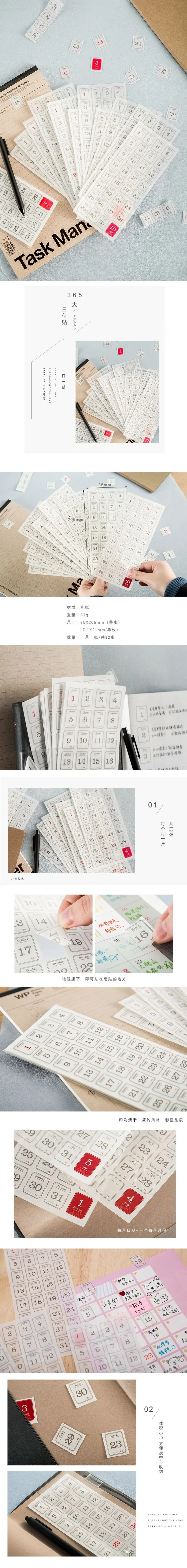 Самоклеящиеся украшения для дневника, календарь на 12 листов, 365 дней