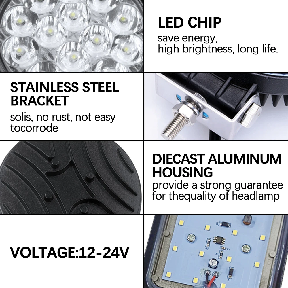 Светодиодный мини-светильник рабочего освещения 42 Вт, точечный светильник, светодиодный светильник для внедорожника, 12 В, 24 В, светодиодный светильник для грузовика, внедорожника 4x4 4WD, автомобиля, вездехода