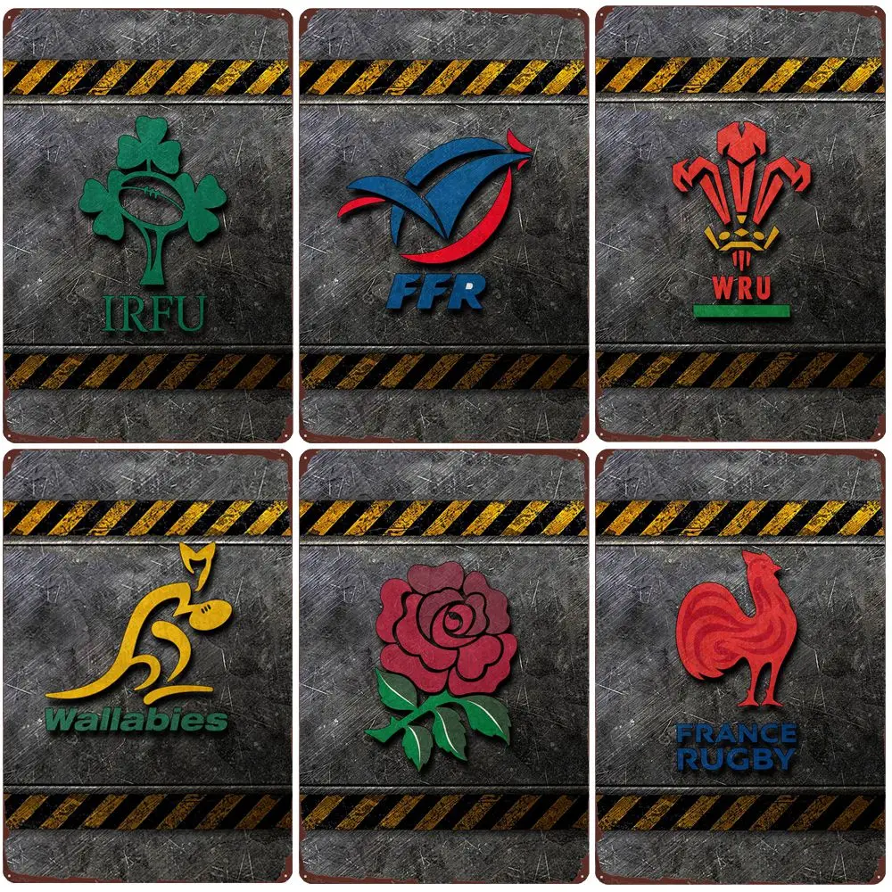 Регби клуб Винтаж металлическая жестяная вывеска кафе домашняя комната украшение стены Ирландия Франция регби Ретро картина Plauqe плакат MN183