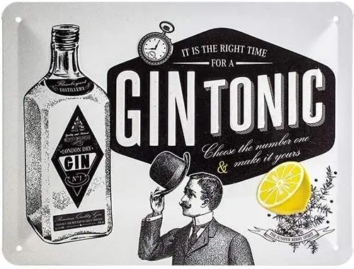 CRAFTY CAPERS Ретро жестяной знак-открытый бар-Джин тоник-Подарочная идея для коктейлей, 15x20 см, Джин и тоник