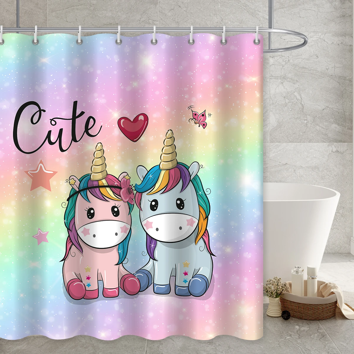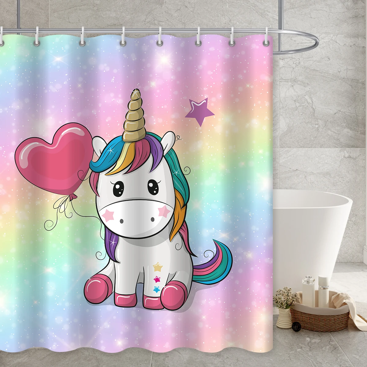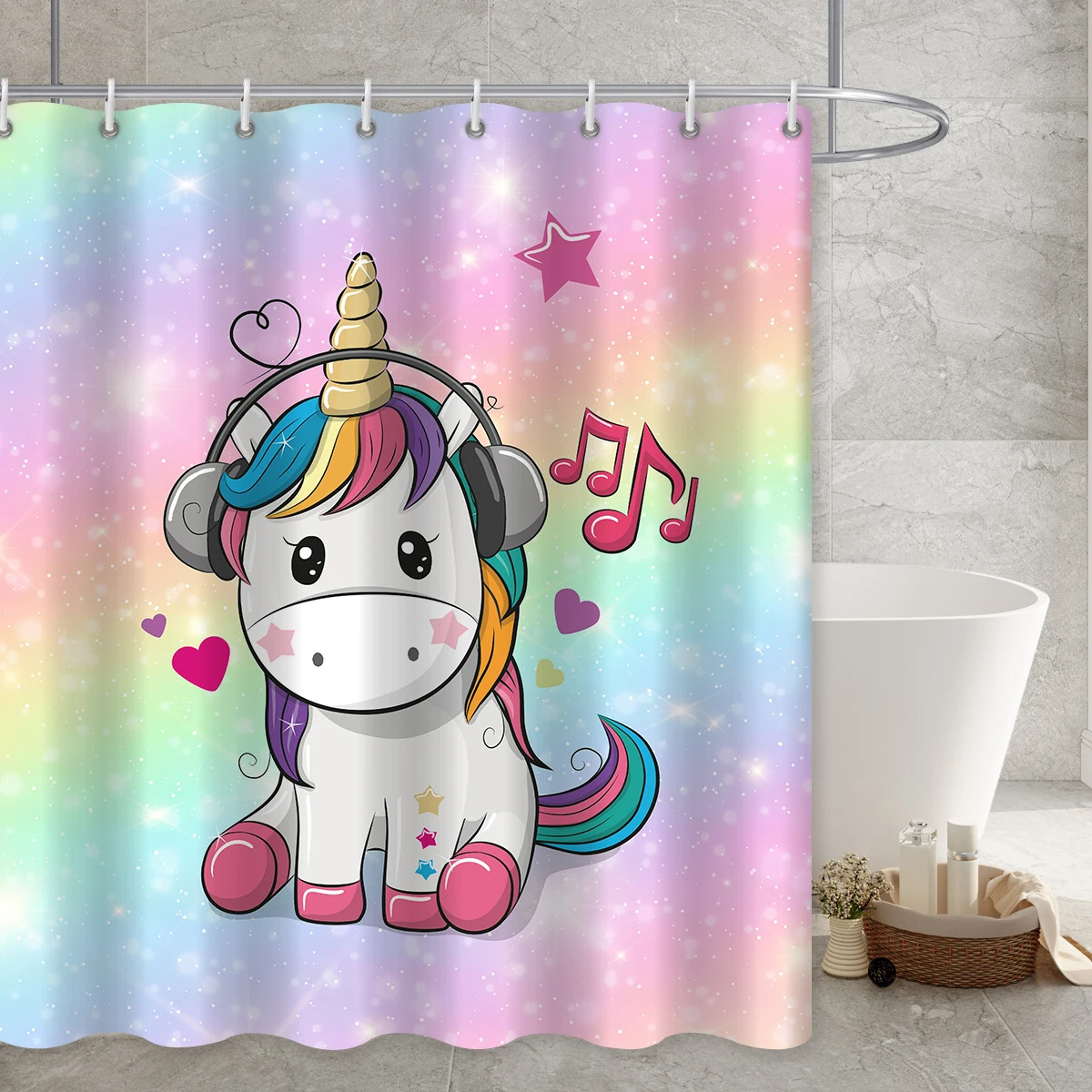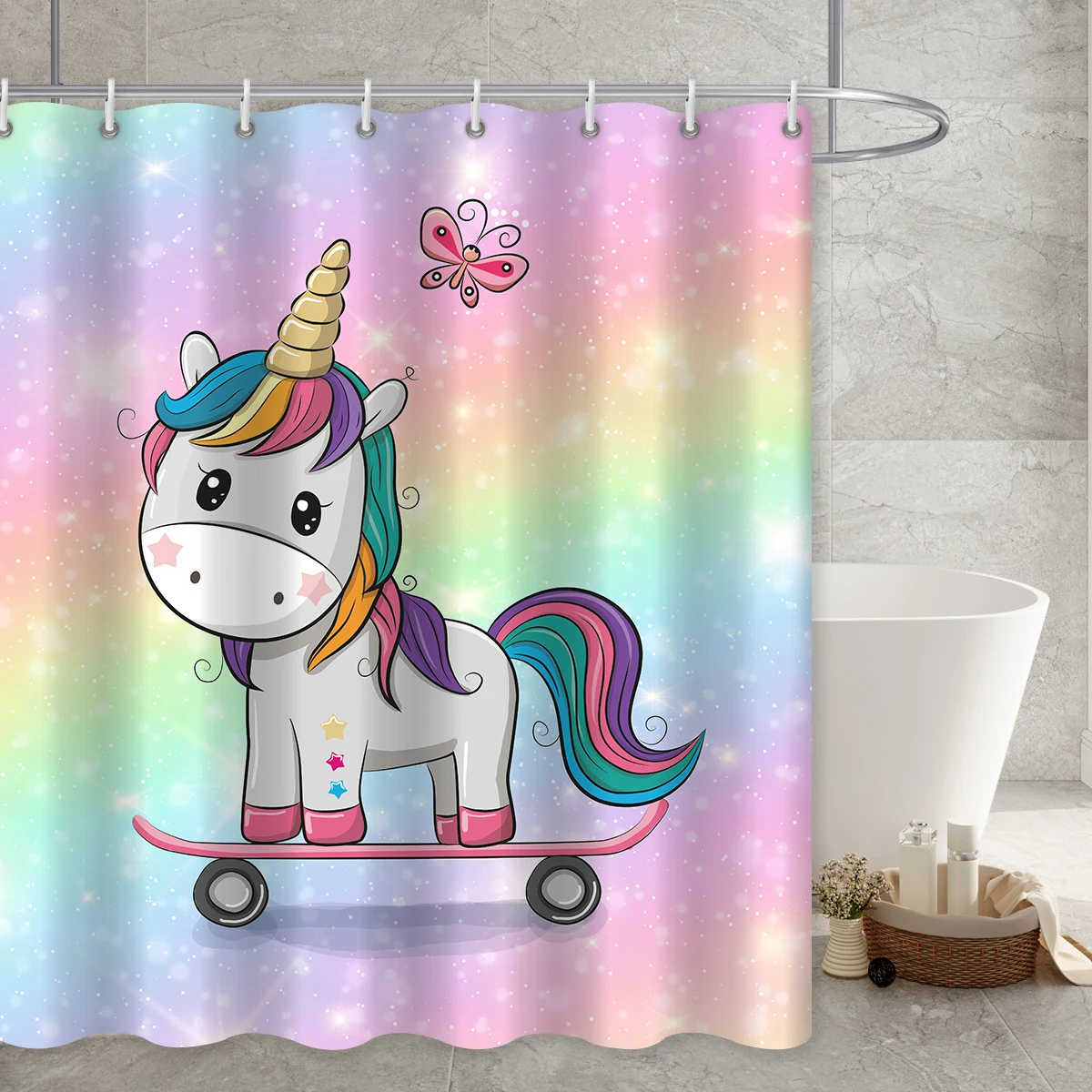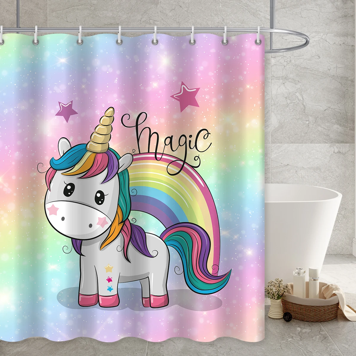 Шторы для душа с радужным принтом единорога, аксессуары для ванной комнаты, водонепроницаемые занавески в мультяшном стиле, крючки для декора кровати и ванной