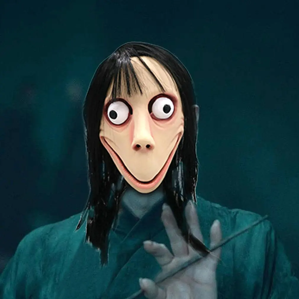 Забавная страшная взломная маска для игры, косплея для взрослых, полноголовая, Хэллоуин, призрак, МОМО, латексная маска с париками