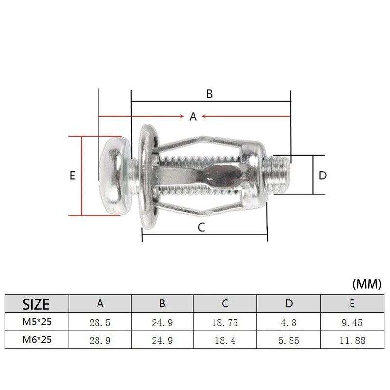 Новое и высокое качество1. Просверлите отверстие до рекомендуемого диаметра.2. Нажмите на якорь в отверстие, пока он не будет погружен в поверхность подложки.3. Прикрепите установочный инструмент к головке винта. Сожмите триггер, чтобы расширить якорь. (маленькие размеры могут быть установлены с помощью отвертки)4. Снимите винт и поместите его через приспособление, а затем обратно в якорь. Затяните винт до тех пор, пока устройство не зафиксировано.Размер: как показано на фотографияхПосылка включает в себя: 10 шт.