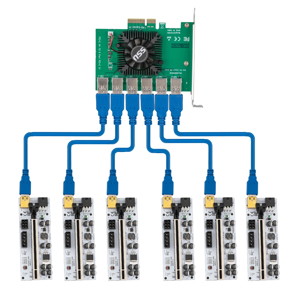 RGeek усилитель карты адаптера 6 шт. PCI-E Express x4 до 16x Райзер 010 PCIE 1 до 6 слотов PCIe порт для майнинга биткоинов BTC