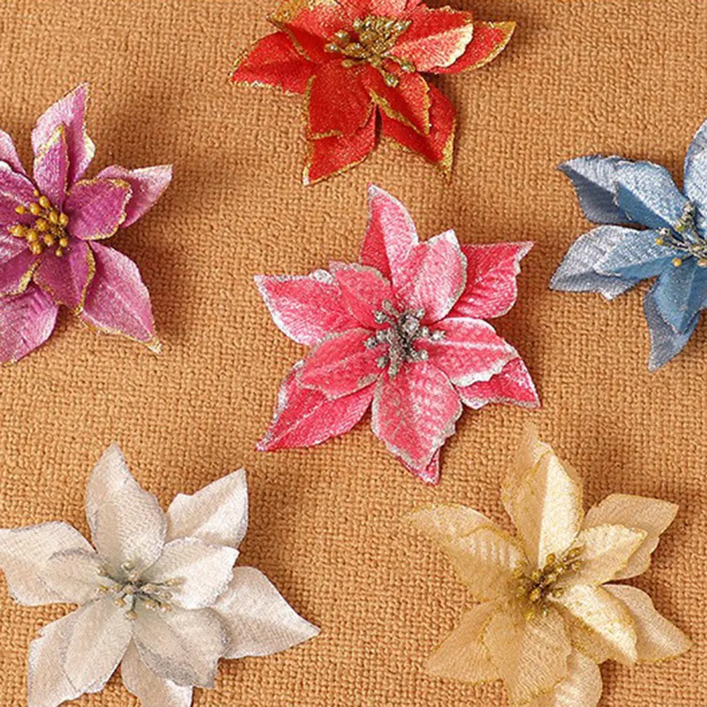 10 шт. пуансеттийный блестящий цветок, Рождественский Декор, венок,...