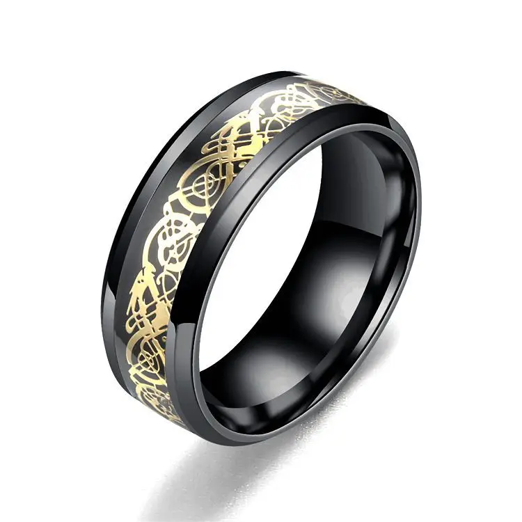 Aroutty 8 мм мужское кольцо красное синее черное инкрустация дракона удобные кольца из нержавеющей стали для мужчин обручальные кольца ювелирные изделия Прямая поставка
