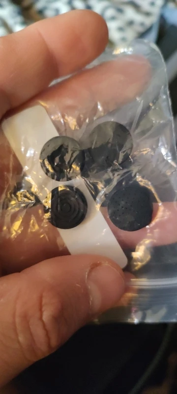 6 резинок прибыли, все они разные, нет двух, которые одинаковы, поэтому вы должны знать, какой из них лучше подходит для правого и левого джойстика! Они похожи на обычные элементы управления, только в миниатюре, я надеюсь, и они в прошлом!