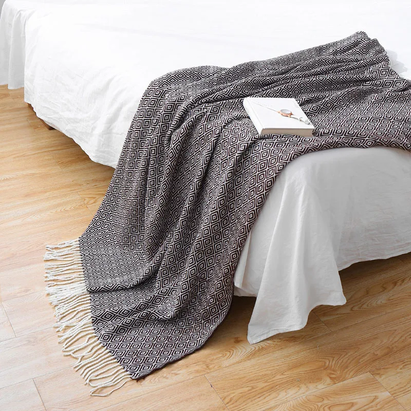 Тканое жаккардовое трикотажное одеяло для кровати, дивана, декоративное ТВ, офисное покрывало для сна, s, покрывало для дивана, мягкое постельное полотенце, покрывало в клетку