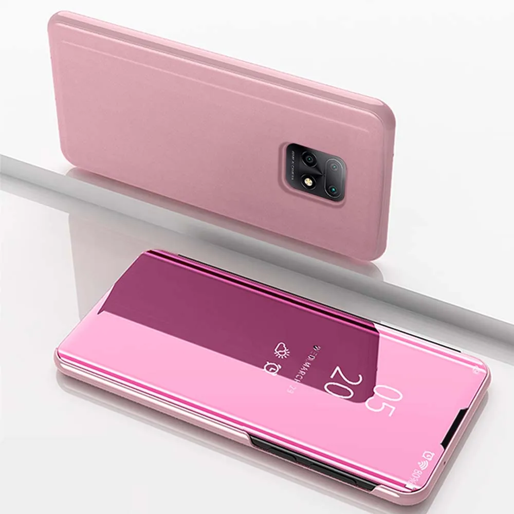 Чехол для телефона Xiaomi Redmi Note 10, складной держатель, зеркальное покрытие, роскошный кожаный защитный чехол для Redmi Note 10Pro Max