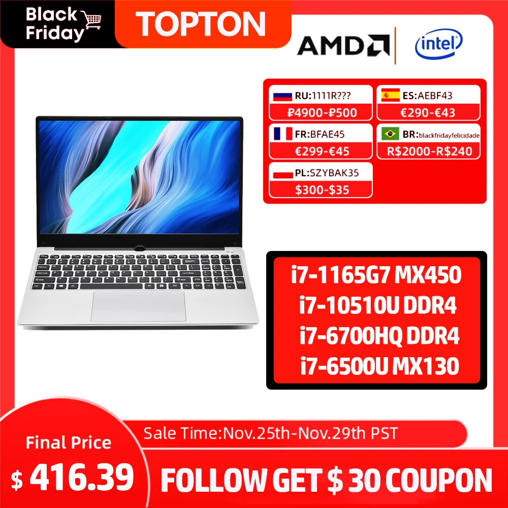 Ультратонкий ноутбук Topton, 15,6 дюйма, Intel Core i7 10510U i5 10...