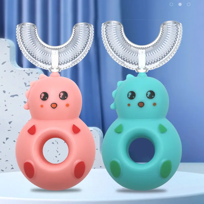 Детская ручная зубная щетка, 360 градусов, силиконовая u-образная зубная щетка, мультяшный подарок для детей 2-6-12 лет