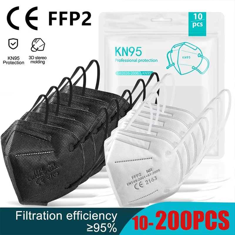 10-30 шт. ffp2mask Black kn95 mascarillas negra взрослые 5 слоев fpp2 утвержденный kn95 CE респираторная маска ffp2 многоразовая ffp3