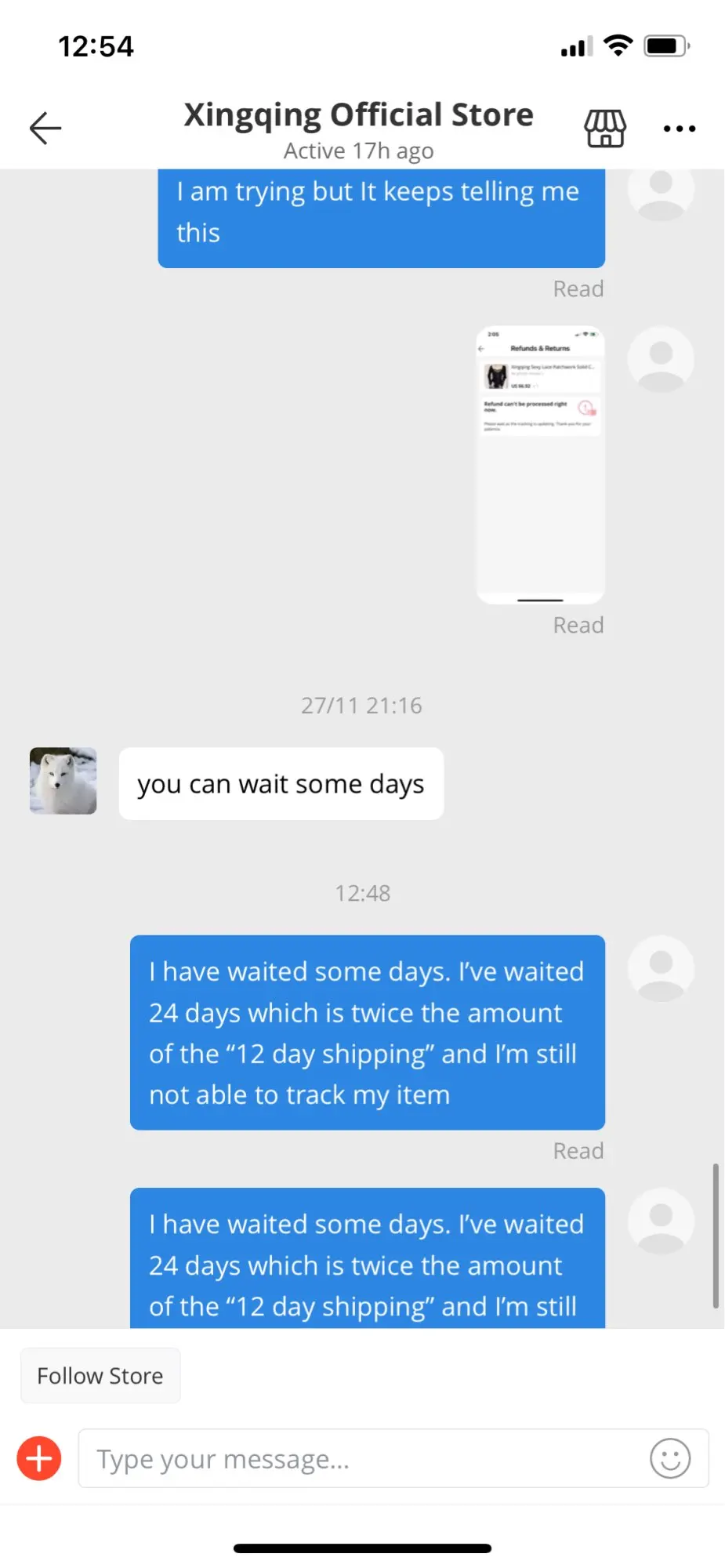 Товар означает «гарантию доставки в течение 12 дней», но продавец не отправил мой товар до последнего дня и 24 дней, и я не мог отслеживать свой товар. Я хотел бы сообщить продавцу, и они были полностью бесполезны и не помогли. Я хотел бы отправить сообщение продавцу и спросить: «Почему он говорит, что отслеживание недоступно?» И они ответят «вы можете ждать несколько дней» снова и снова на каждый вопрос, который я задал. Бесполезно и невероятно грубо!