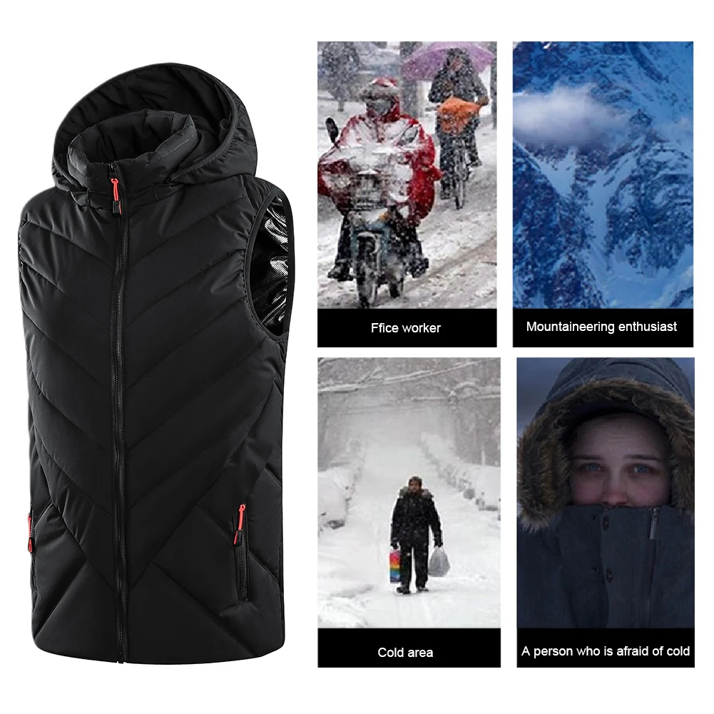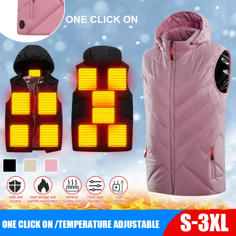 Жилет с подогревом для мужчин и женщин, теплый зимний жилет с капюшоном и USB-подзарядкой, 3 тепловых электрических жакета, уличное теплое пальто, 811