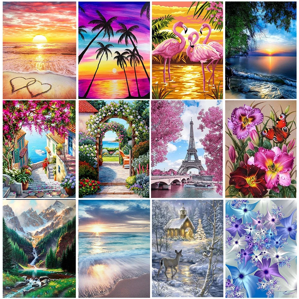 Закат пейзажи DIY 5D алмазная картина полная круглая дрель мозаика пейзаж Алмазная вышивка картина Стразы домашний Декор подарок