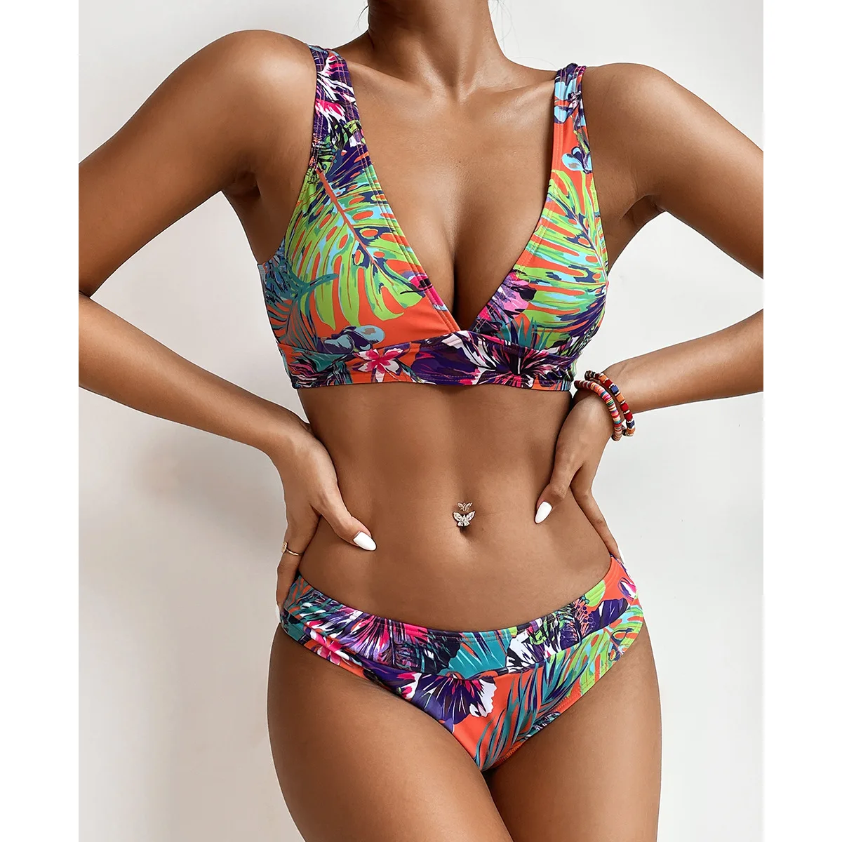 Купальник 2021 года, горячий принт листьев, низкая талия, комплект бикини из двух предметов, купальник, женская пляжная одежда, купальник, купальный костюм