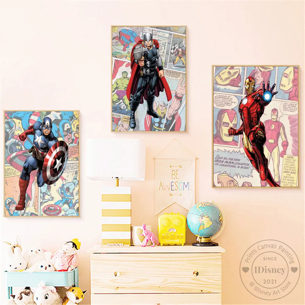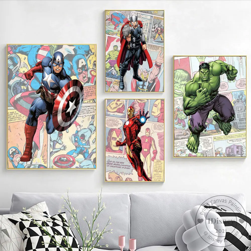С героями комиксов Марвел, постеры с супергероями Мстители живопись...