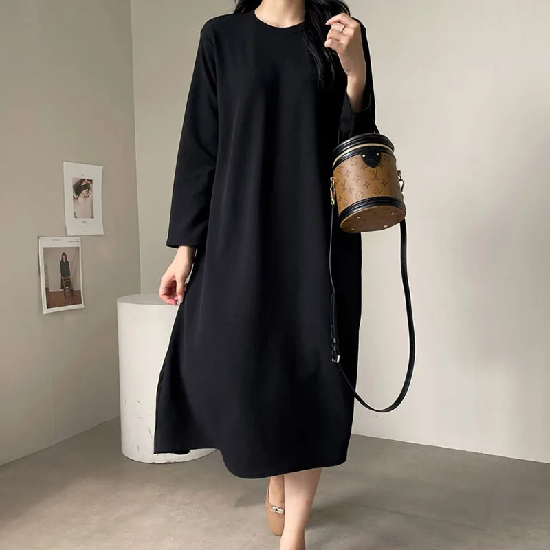 Женское трикотажное платье-свитер, однотонное черное теплое плотное Повседневное платье в Корейском стиле, зима 2021