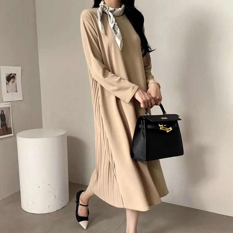 Платье-Свитер женское трикотажное однотонное, с высоким воротником