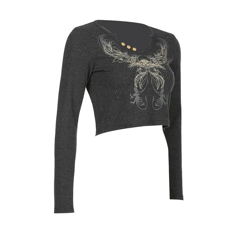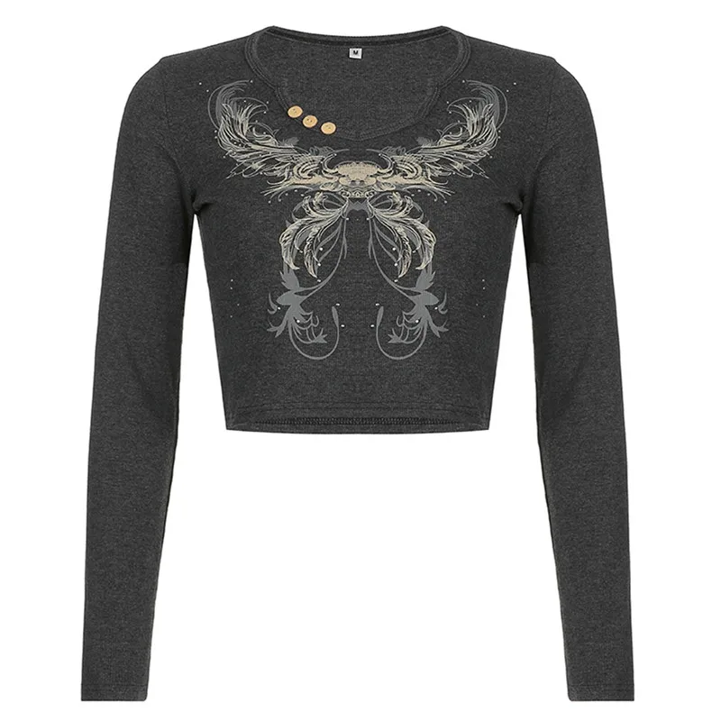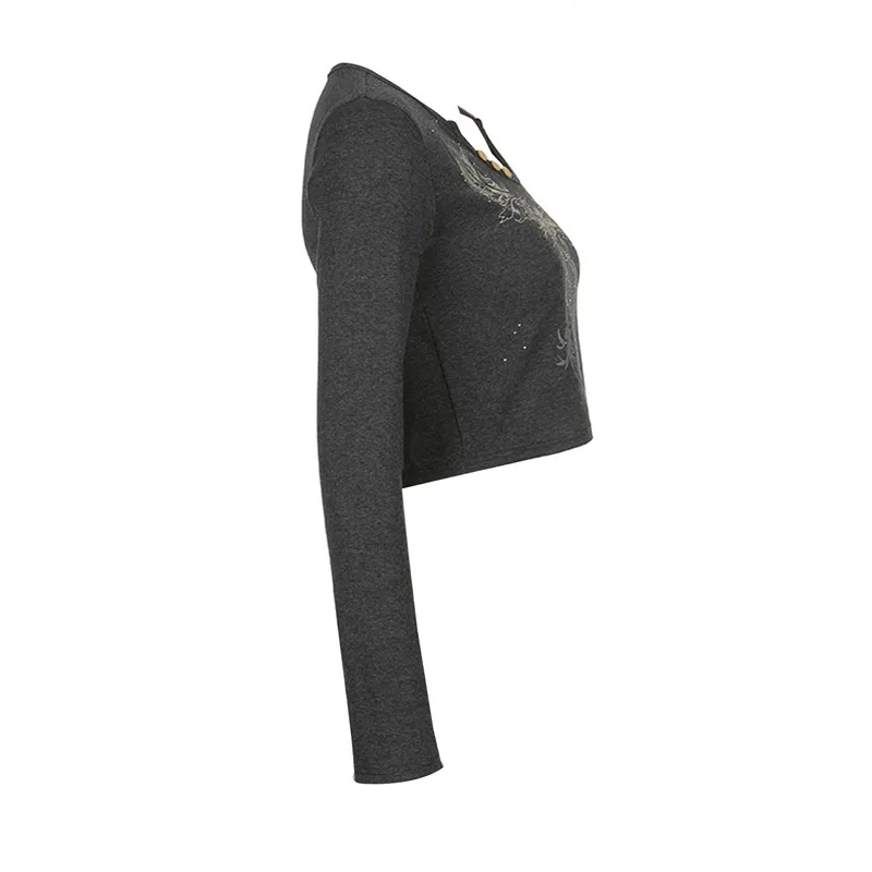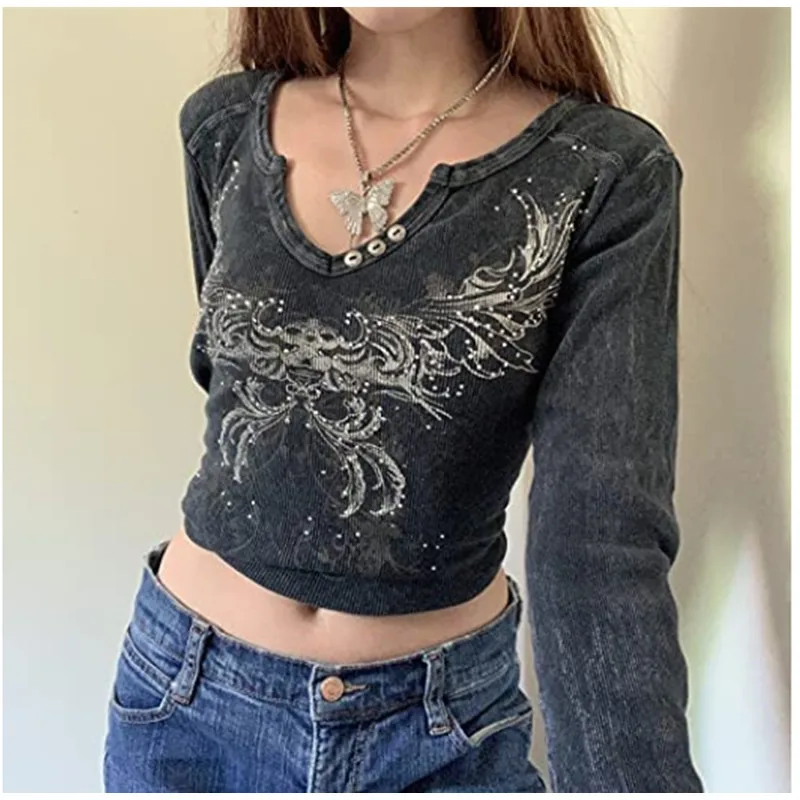 Xingqing Стразы Y2K женская футболка 2021 Fairycore гранж Футболки с длинным рукавом графический пуловер Топ Осенняя винтажная одежда